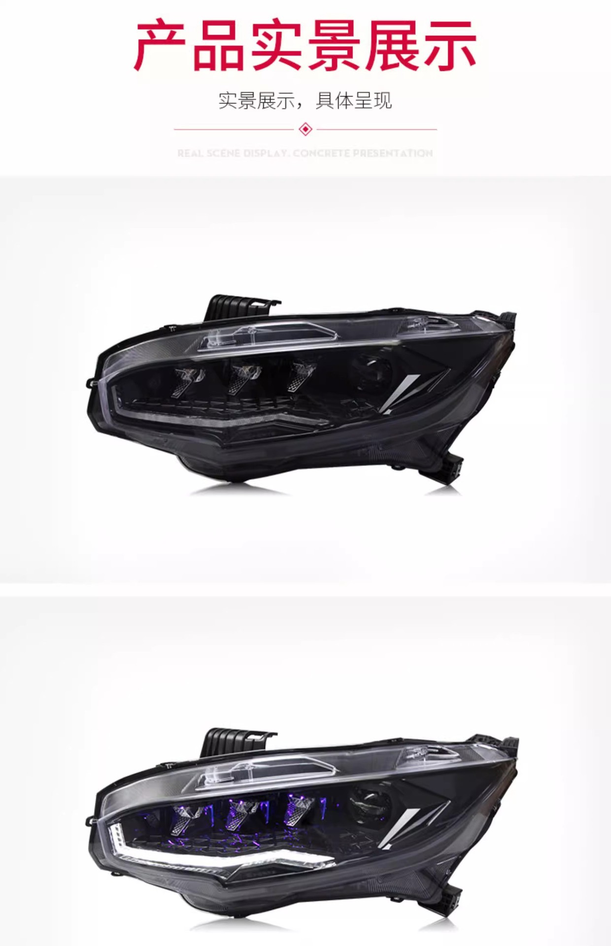 Star Diamond LED Headlight Assembly with DRL Sequential Turn Signal for Honda Civic 10th Gen