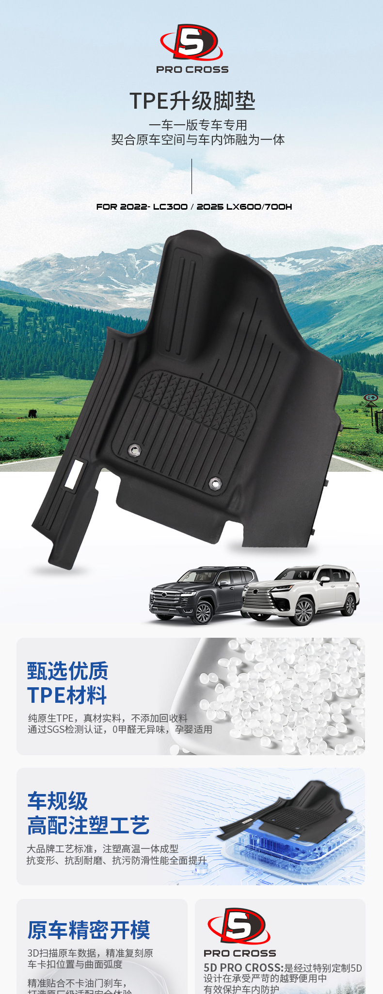 TPE All-Weather Car Floor Mats for Toyota Land Cruiser 300 Lexus LX600 LX700H 2022-present Left Right Hand Drive