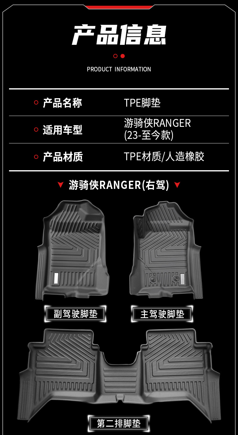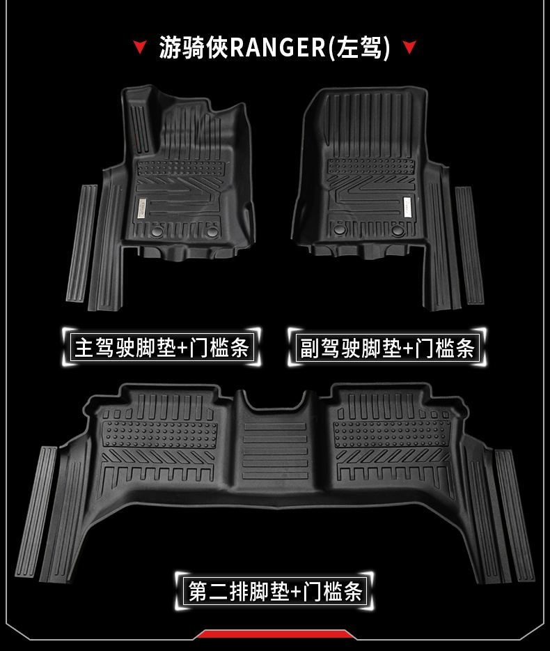 TPE Floor Mats for Ford Ranger 2022-Present Left Hand Drive 3pc Set
