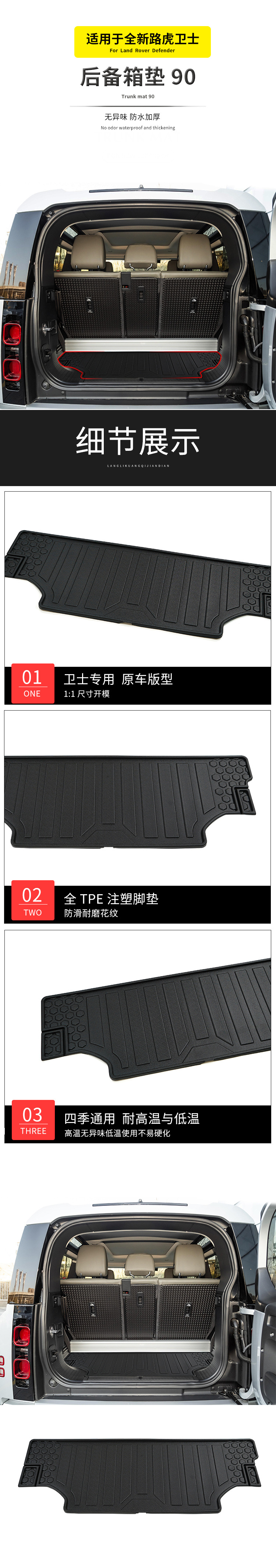 TPE Rubber Waterproof Floor Mat Trunk Liner for Land Rover Defender 90 (2022)