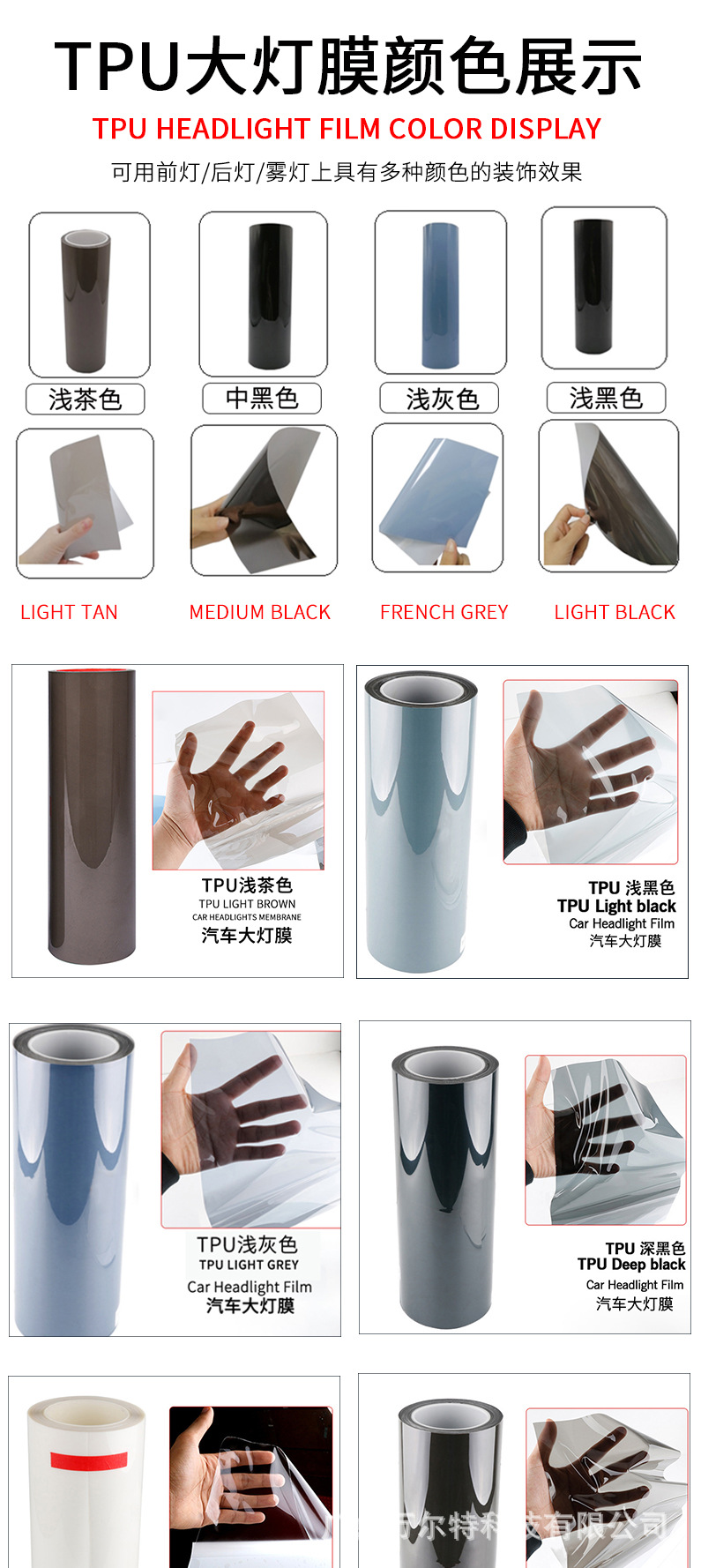 TPH TPU Headlight Protection Film Smoked Black Color Change Light Repair Scratch Car Light Film