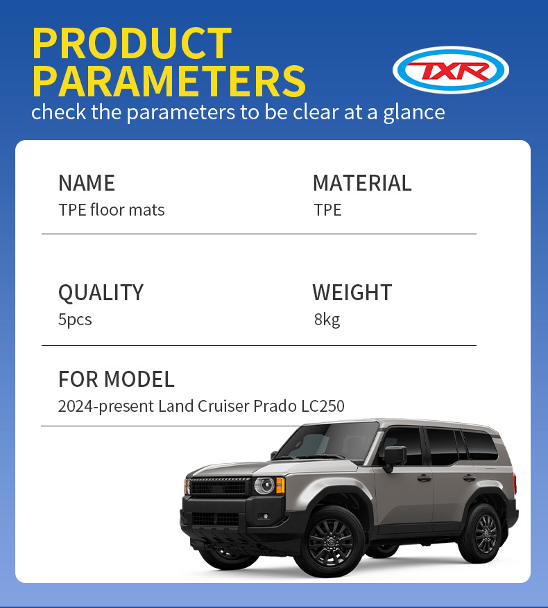 TXR AUTO TPE Floor Mats for Toyota Land Cruiser Prado LC250 2024-Present