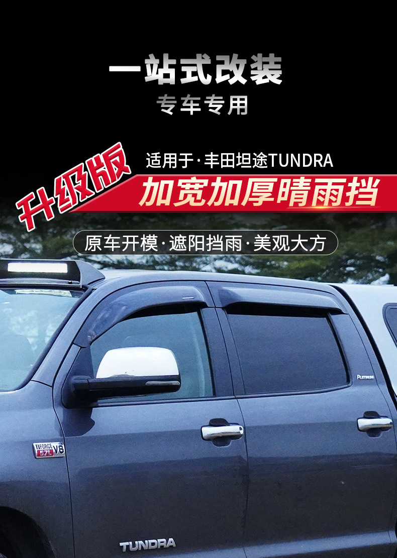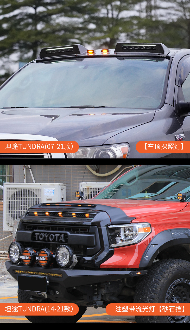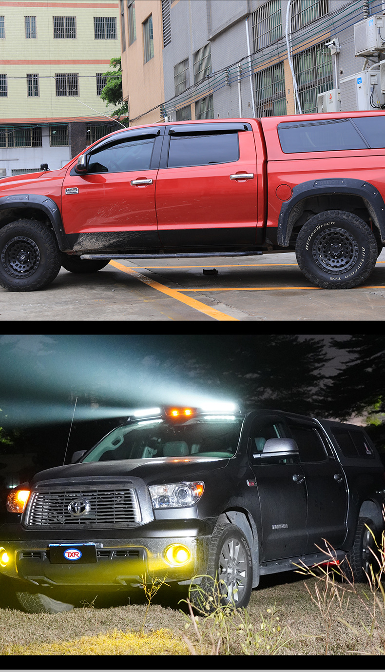 - Direct Fitment: A perfect replacement for Toyota Tundra models from 2007 to 2021. This kit includes a roof top light bar, window visors, and a stone guard specifically designed for your vehicle.