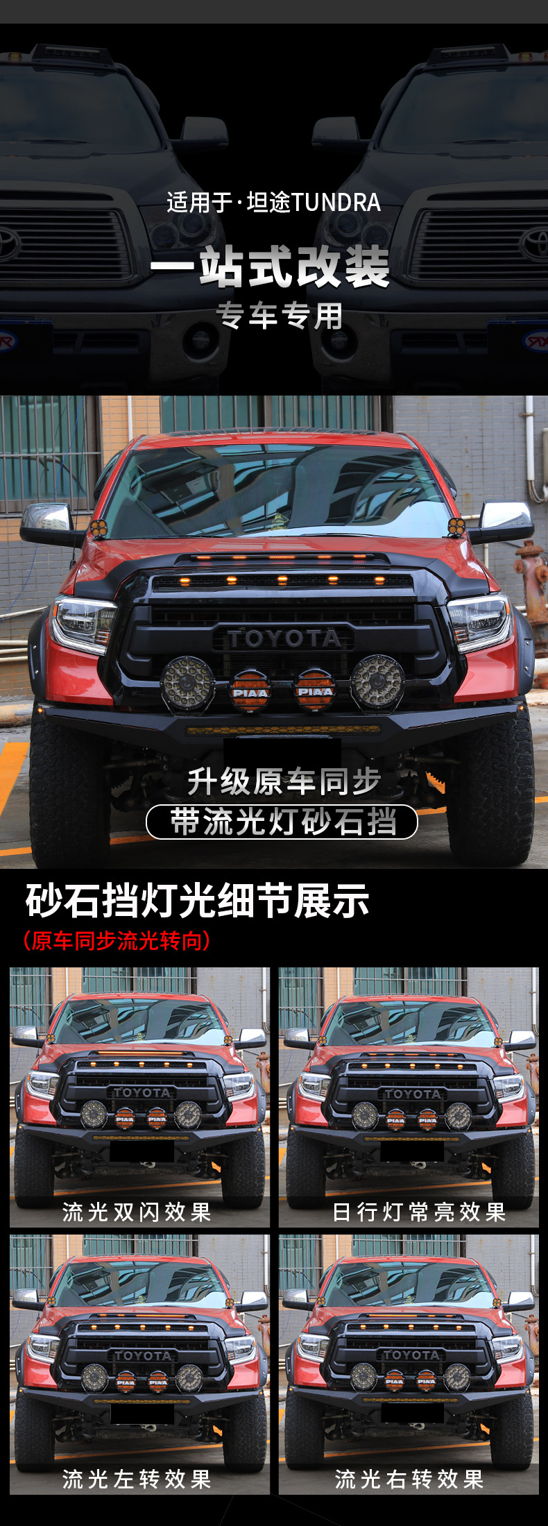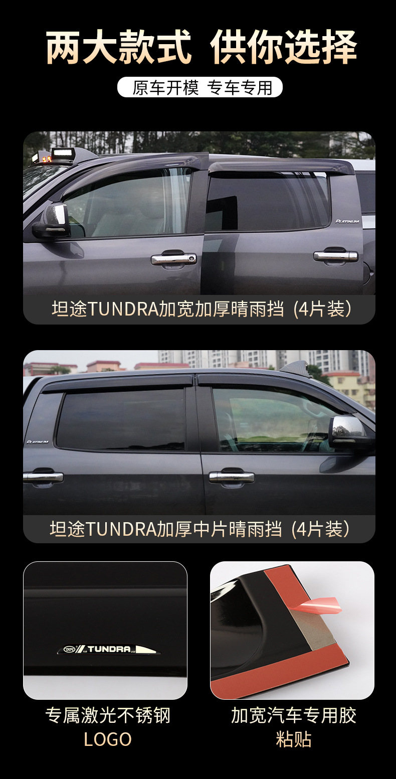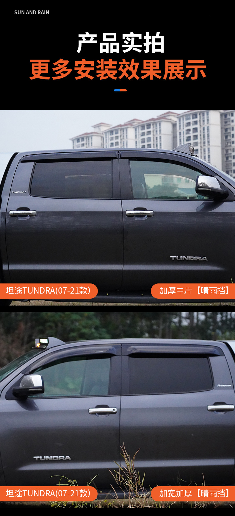 - Direct Fitment: A perfect replacement for Toyota Tundra models from 2007 to 2021. This kit includes a roof top light bar, window visors, and a stone guard specifically designed for your vehicle.