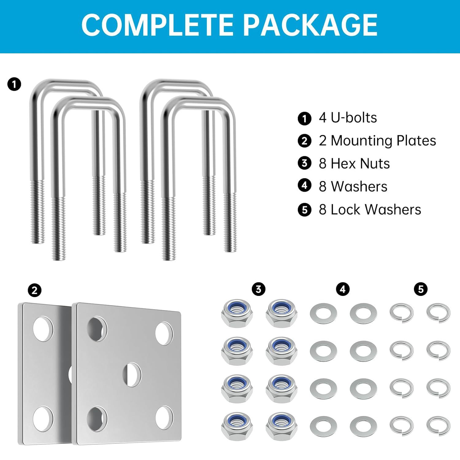 - Easy Installation: This kit includes 4 U-bolts and 2 plates, making installation straightforward and hassle-free, allowing for quick replacement or upgrade of your existing components.