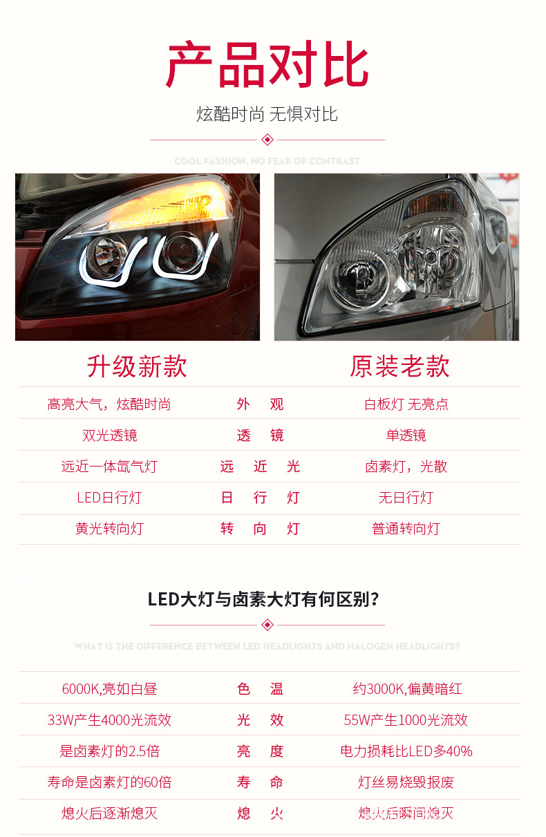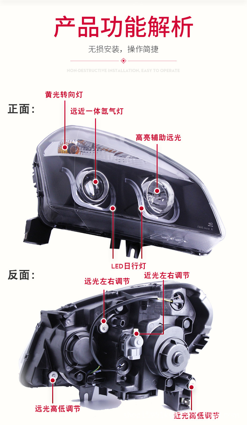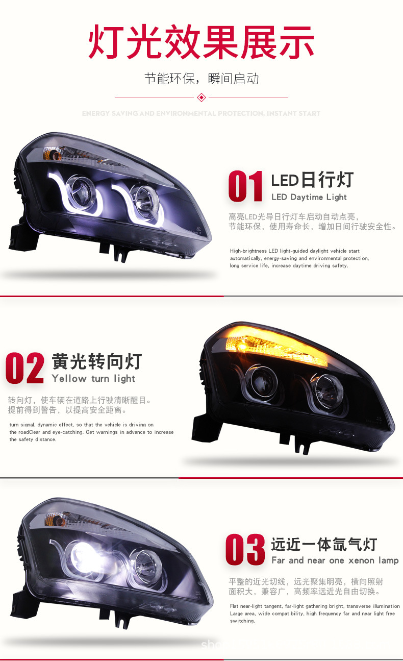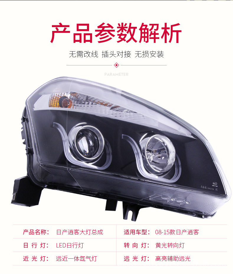 U-Shaped Angel Eye LED Daytime Running Light Projector Xenon Headlight Assembly for Nissan Qashqai (2008-2015)
