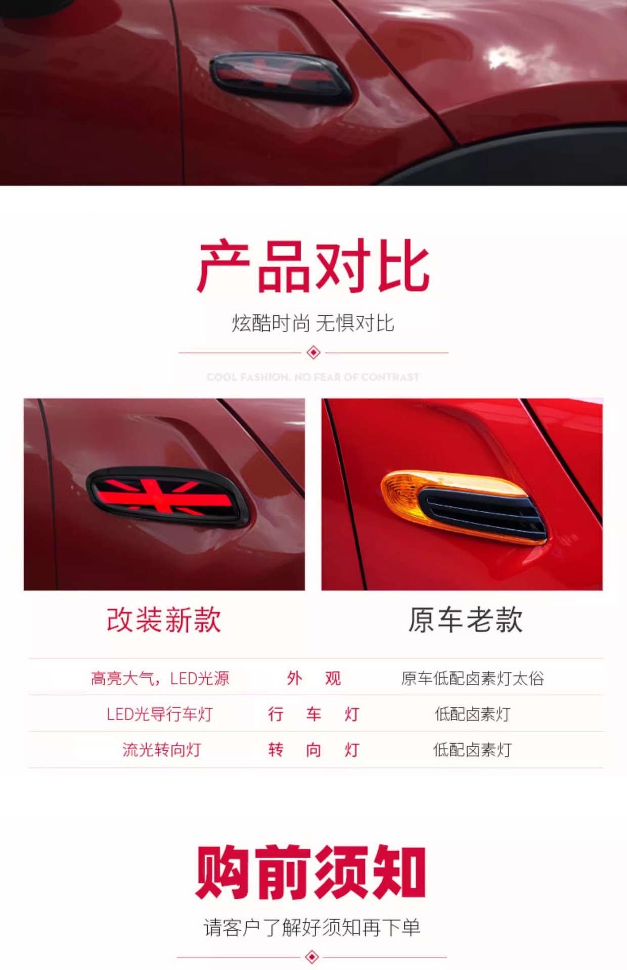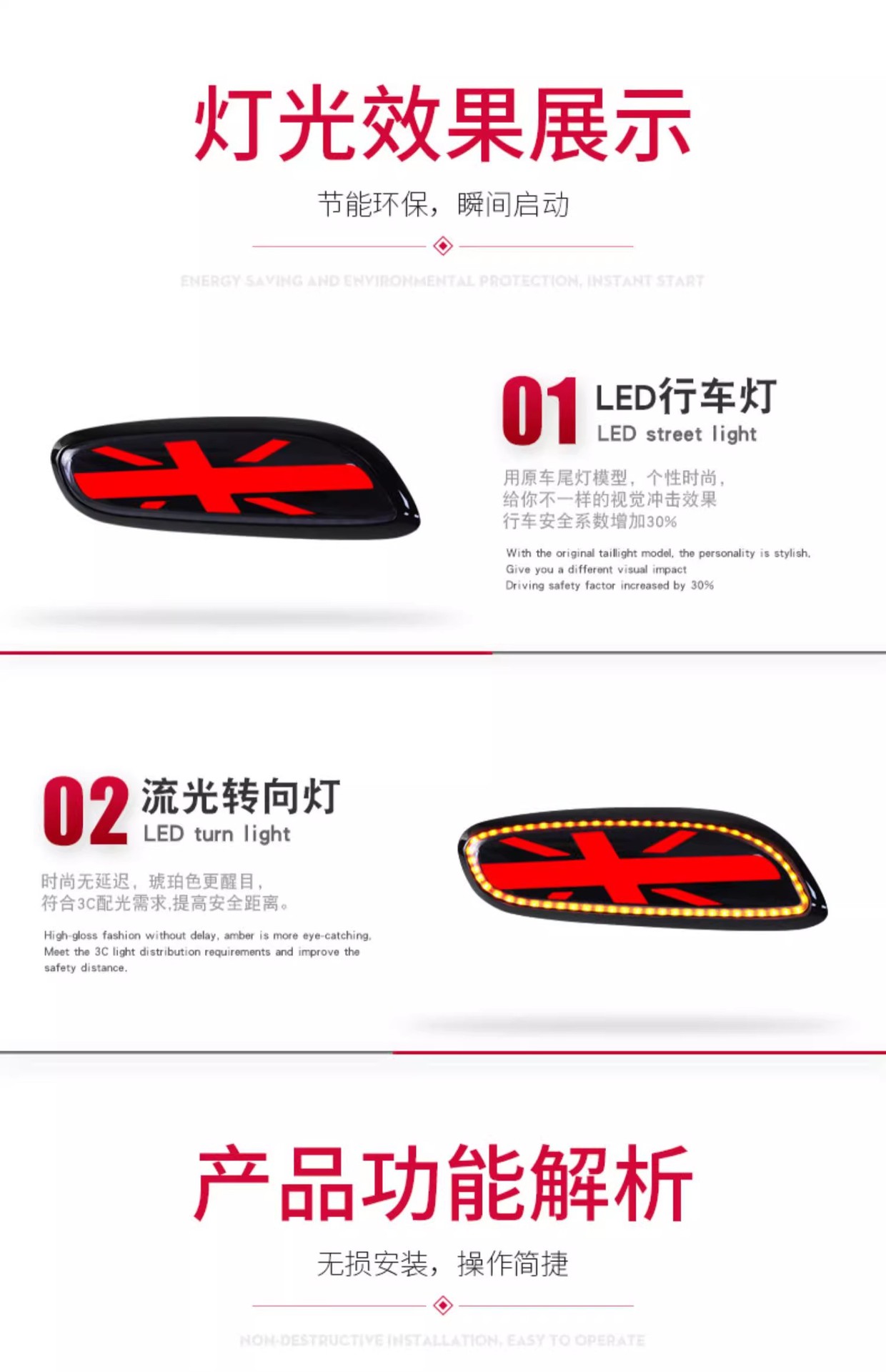 - Stylish Design Upgrade: Featuring a unique UK flag design and dynamic flowing turn signal function, these lights enhance your MINI’s aesthetic, adding a distinctive and eye-catching custom look.