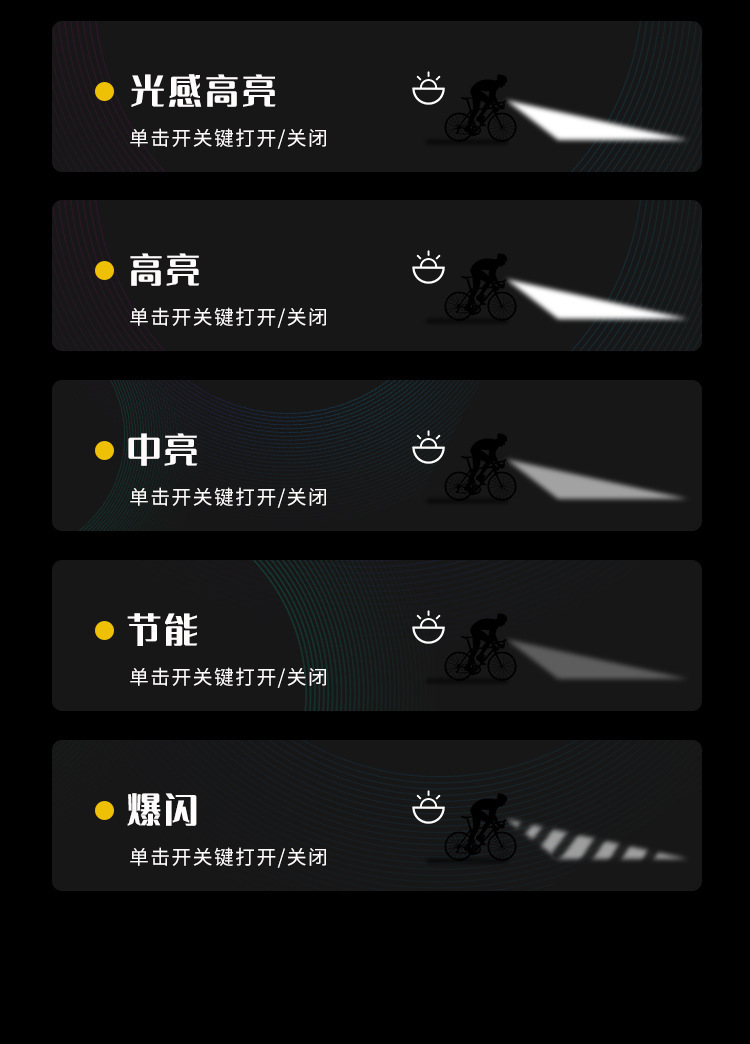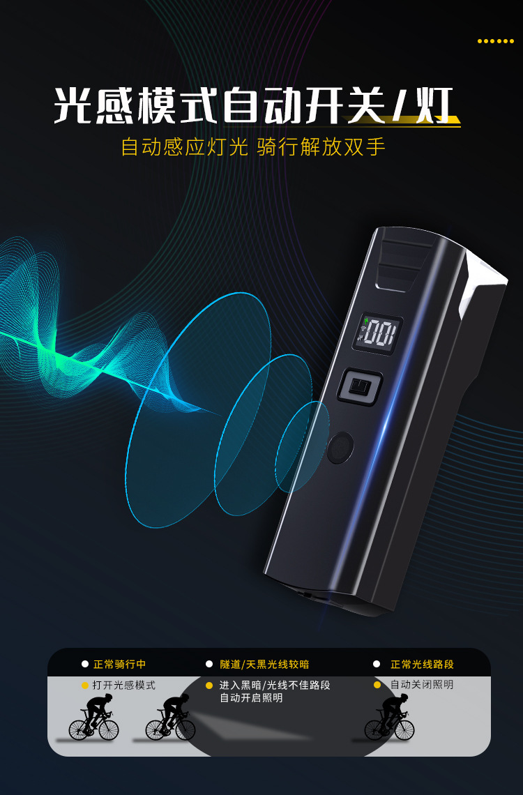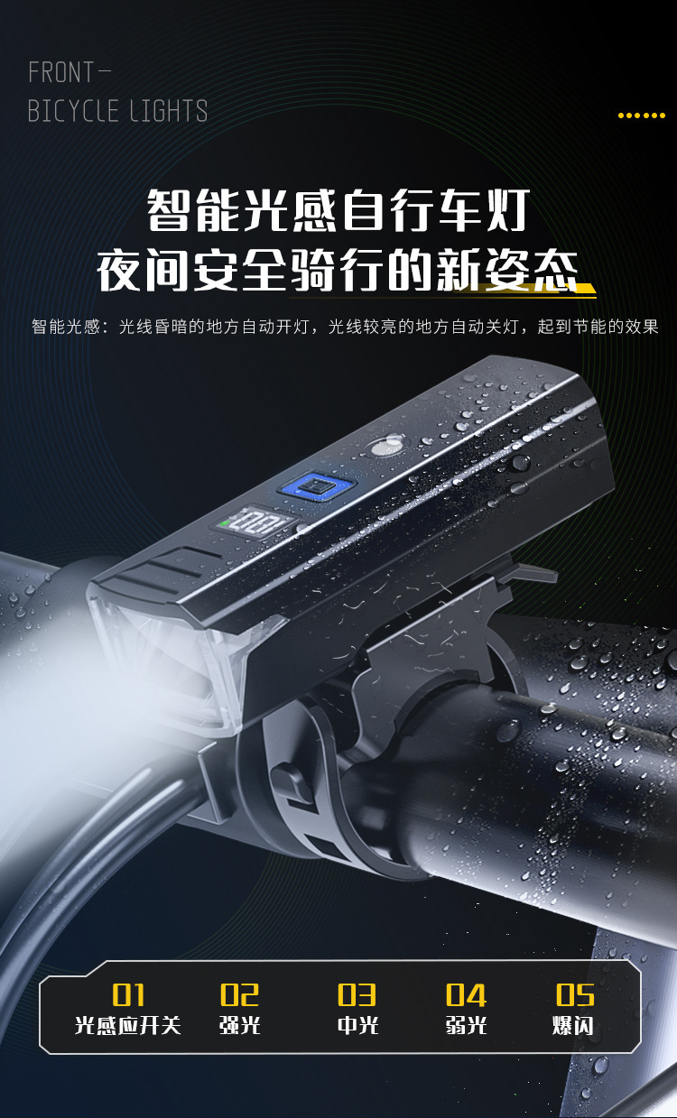 - Performance-Driven Design: Features 300-lumen super bright wide-angle illumination, smart auto-sensing, 20-hour battery life, 6-level waterproofing, and a 5-gear lighting mode for versatile night riding.