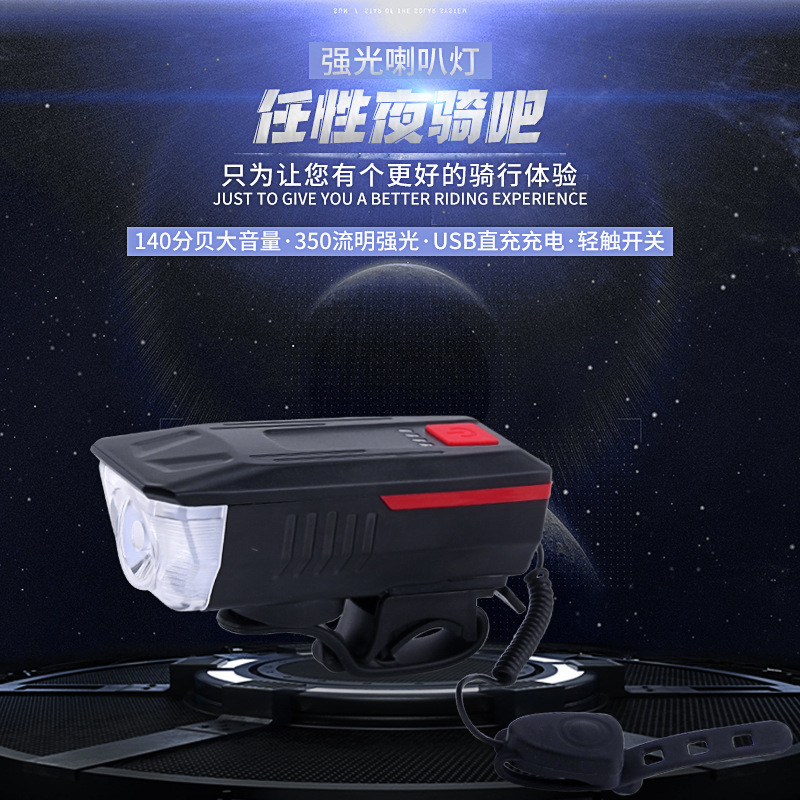 USB Rechargeable Bicycle Headlight with Horn for Night Riding Mountain Bike