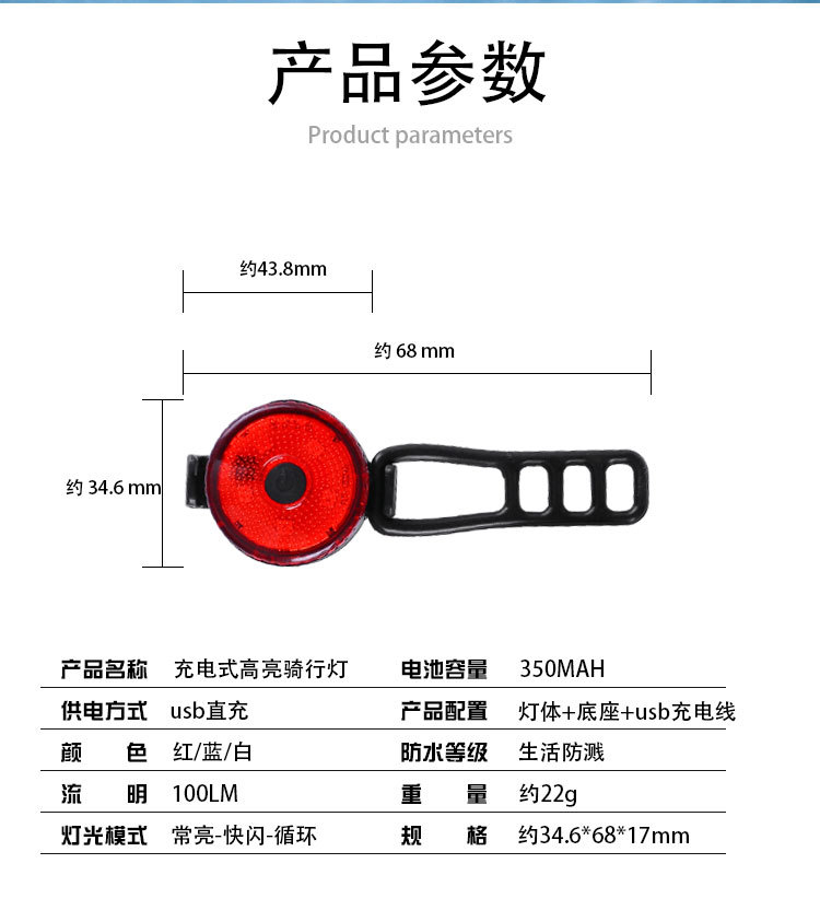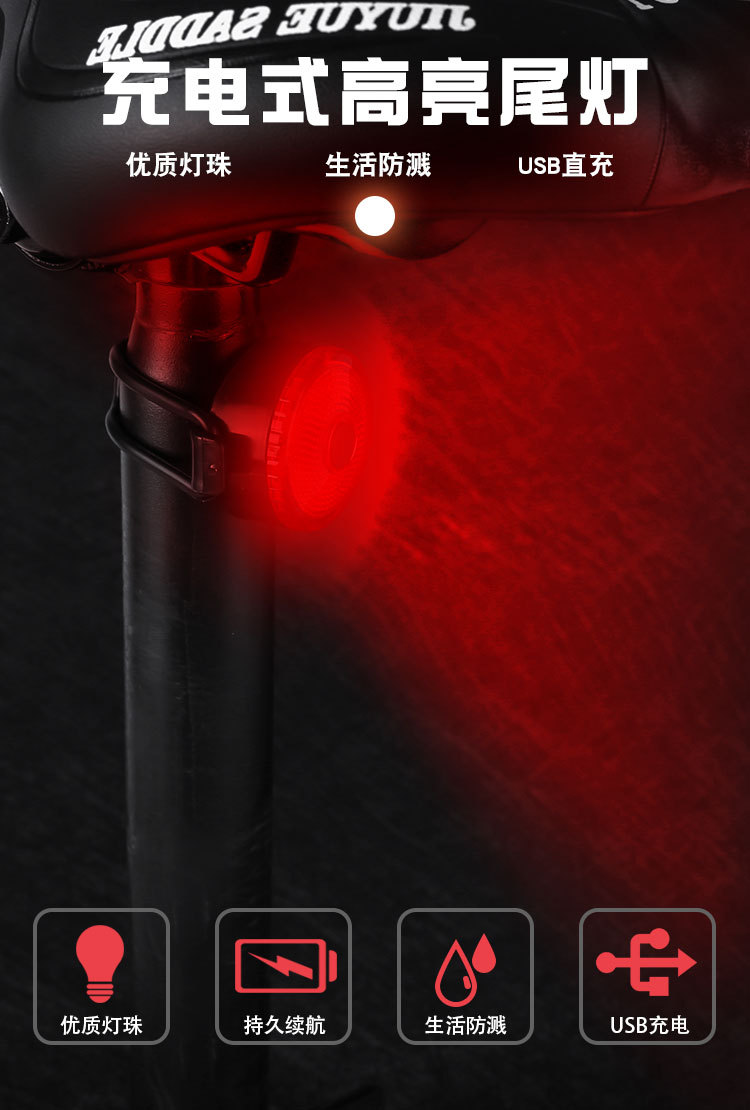 USB Rechargeable Bicycle Tail Light LED Bike Safety Warning Lamp for Mountain Bike Night Cycling