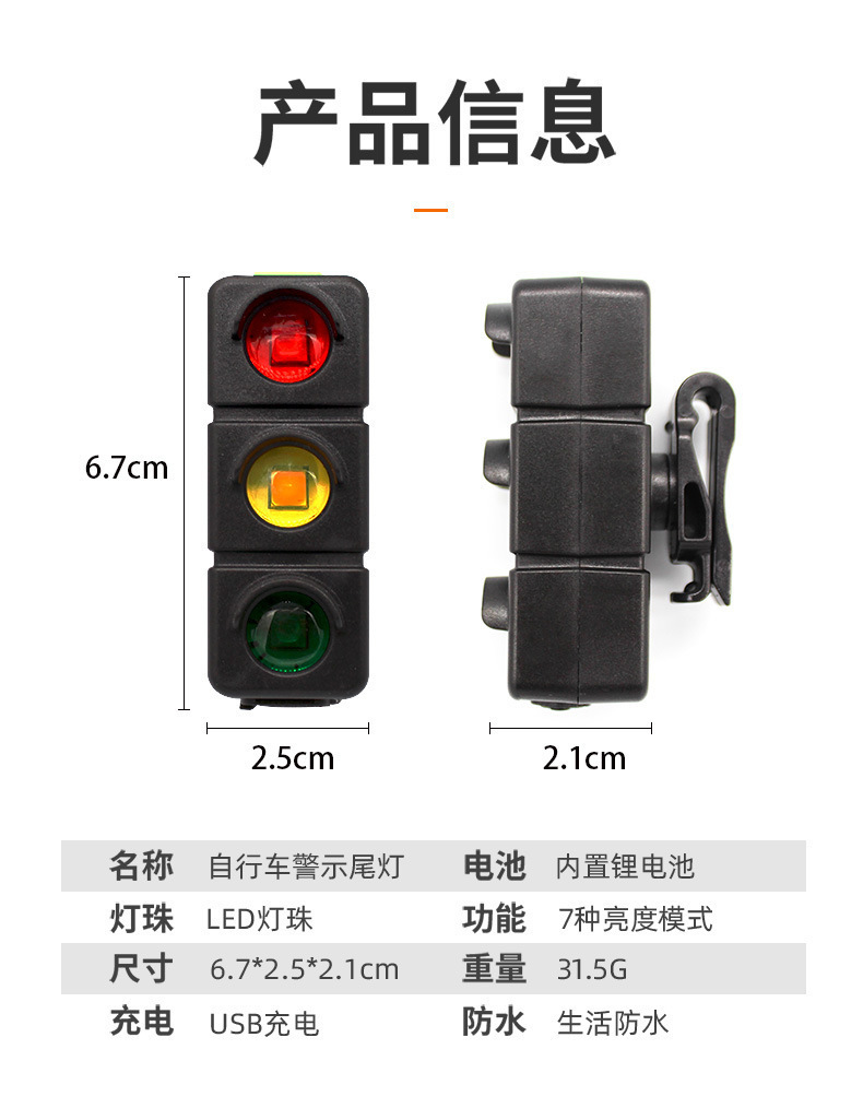 - Performance-Driven Design: Equipped with 3 LED beads emitting red, green, and yellow lights, offering 7 adjustable lighting modes for diverse warning signals and improved cycling safety.