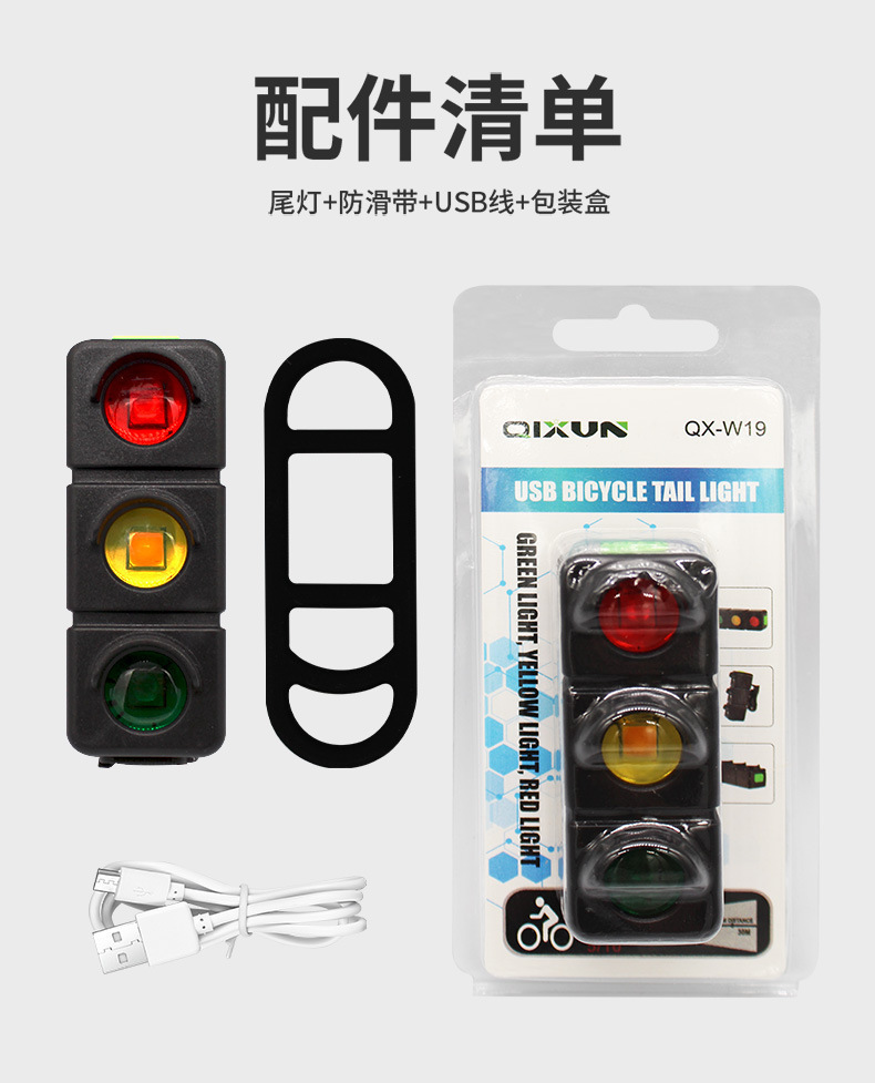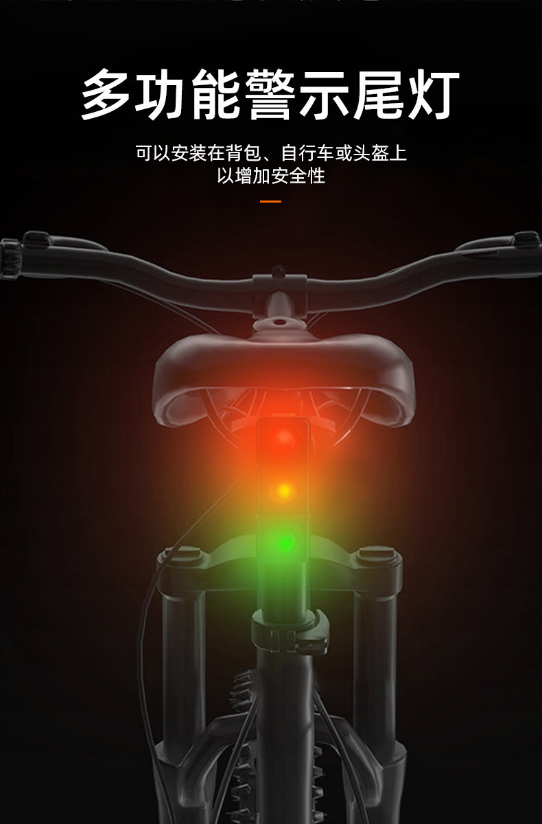 USB Rechargeable Bicycle Tail Light Red Green Yellow Warning Light for Night Riding Mountain Bike