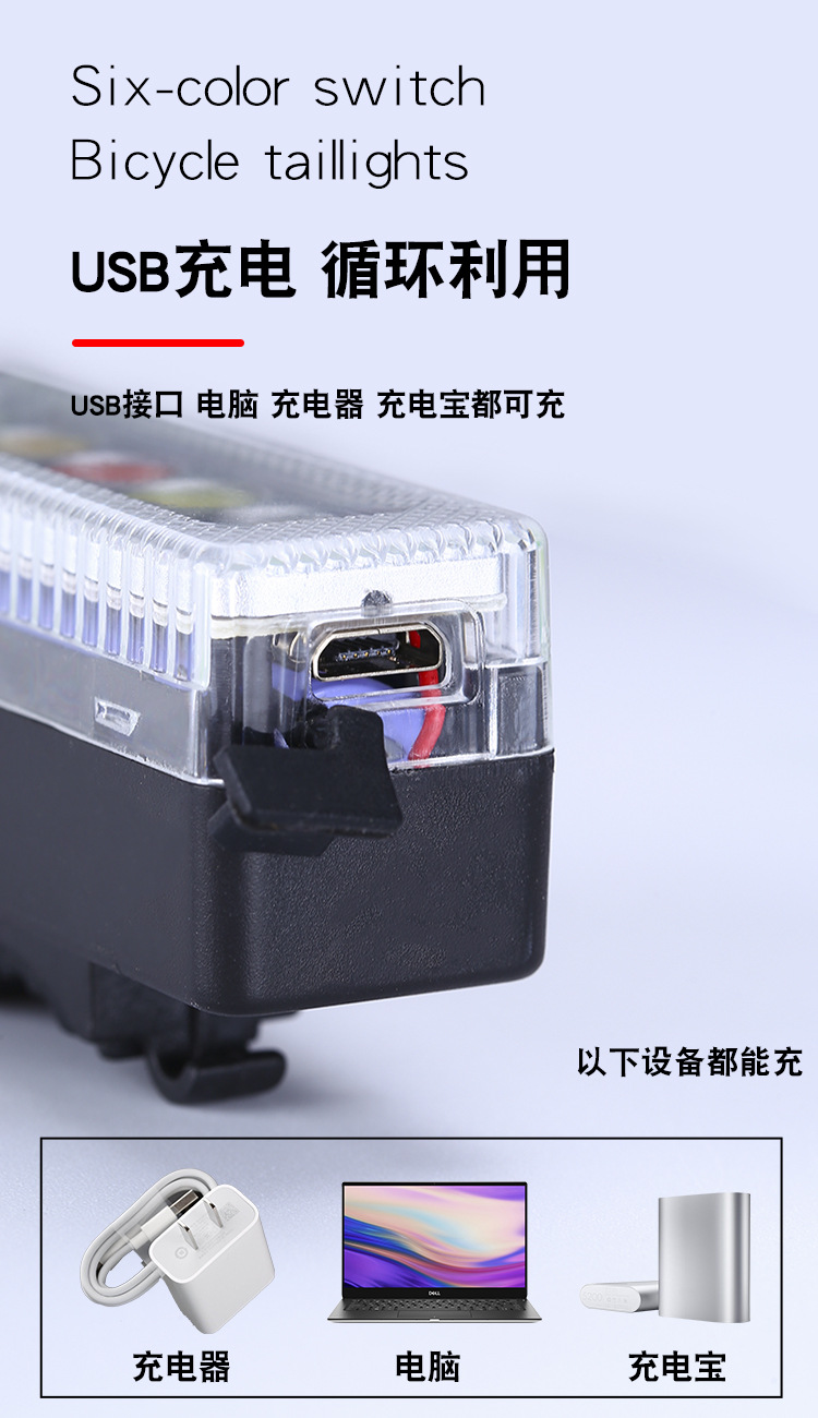 USB Rechargeable Bicycle Tail Light Warning Lamp Bike Safety Light for Mountain Road Bike