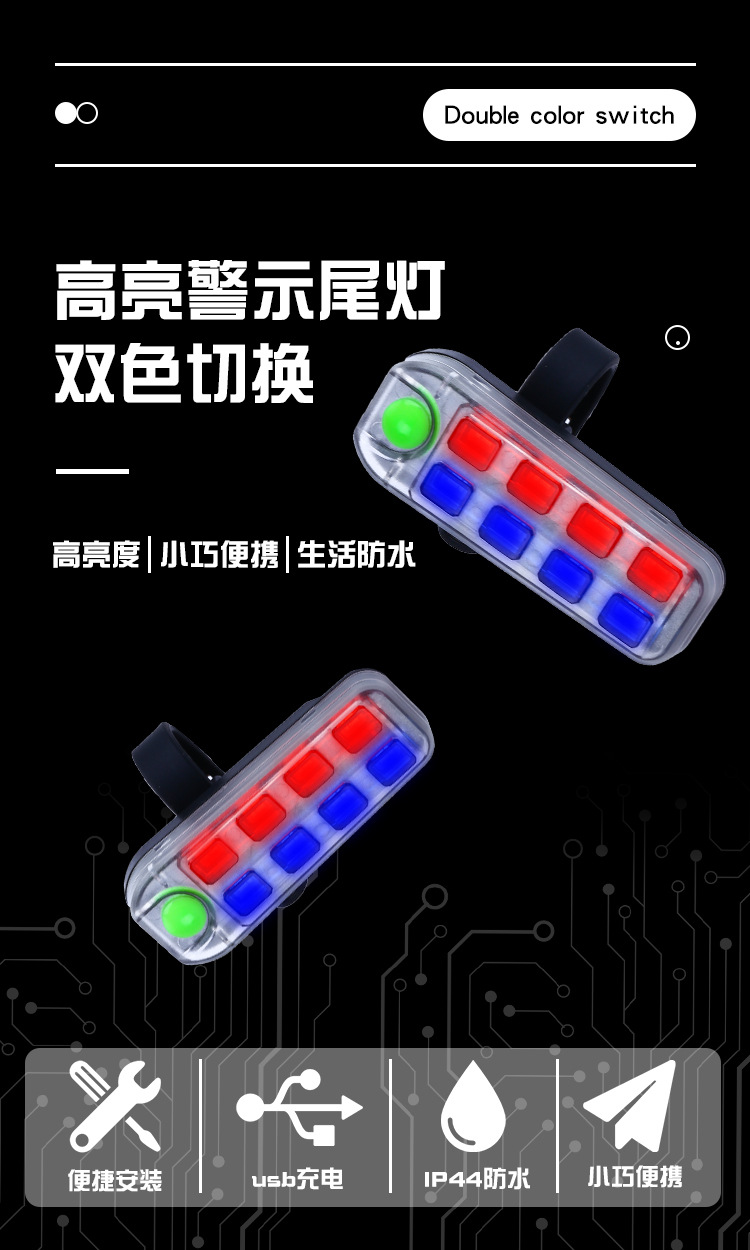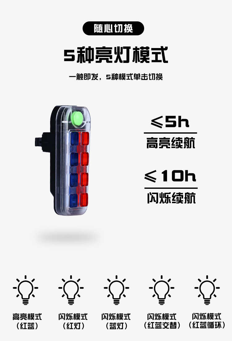 - Performance-Driven Design: Features bright red and blue SMD light beads, offering versatile flashing modes for enhanced visibility and safety during night rides and low-light conditions.