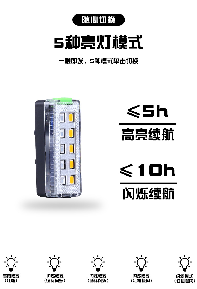 - Performance-Driven Design: Features bright LED lights with dual color (red and yellow) warning, USB rechargeable for convenient power, enhancing visibility and safety during night cycling.