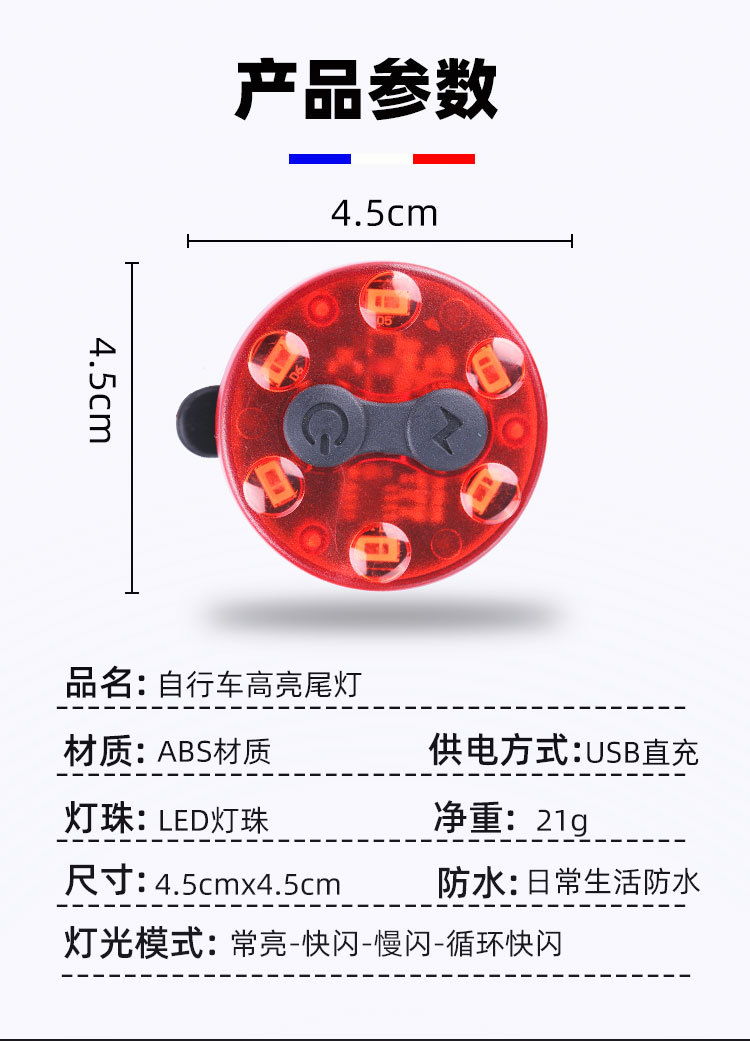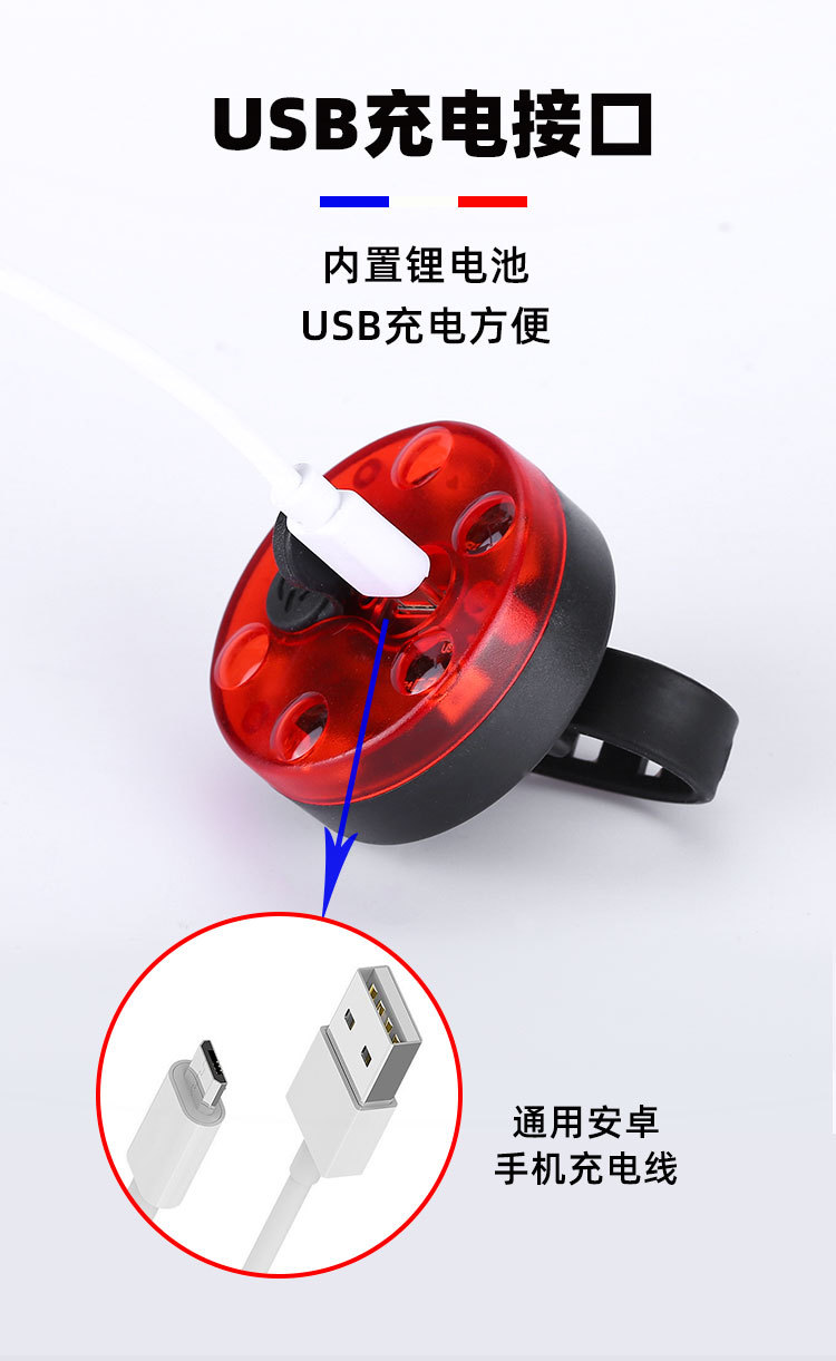 USB Rechargeable Mountain Bike Tail Light LED Warning Cycling Accessory