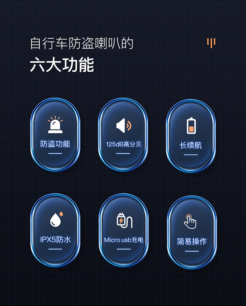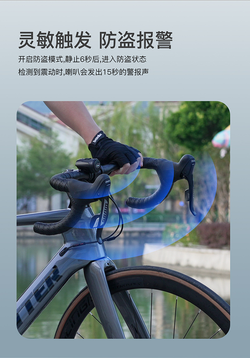 - Performance-Driven Design: Features USB rechargeable functionality, IPX5 waterproof rating, and a loud 125dB anti-theft alarm horn, as indicated in the image, to enhance riding safety and deter theft.