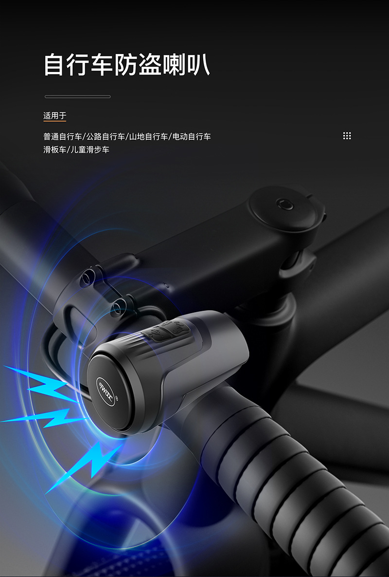 USB Rechargeable Waterproof Bicycle Electronic Bell 125dB Anti-Theft Alarm Horn for Mountain Road Bike