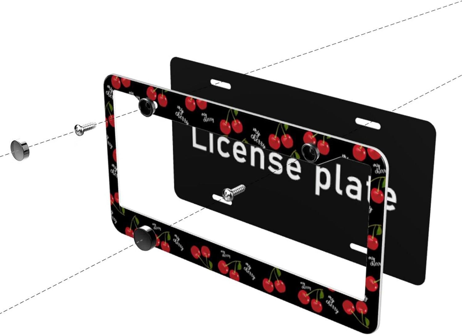 UV Printed Aluminum License Plate Frame US Standard Cherry Design for American Vehicles