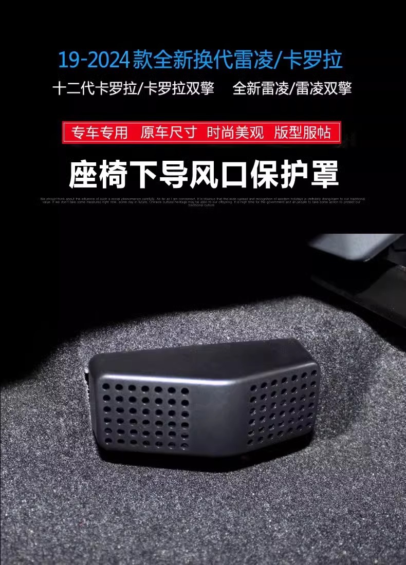 - Direct Fitment: A perfect replacement for the under-seat air outlet covers. Compatible with Toyota Corolla 2019-2024, Toyota Levin 2019-2024, and Toyota Allion 2021-2024.