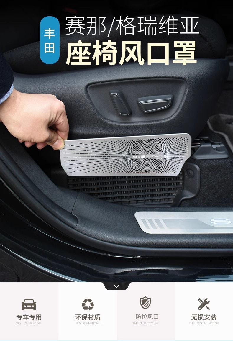 - Direct Fitment: A perfect replacement for Toyota Sienna and Granvia under-seat air vents. Effectively prevents debris from entering and protects the vent outlet.