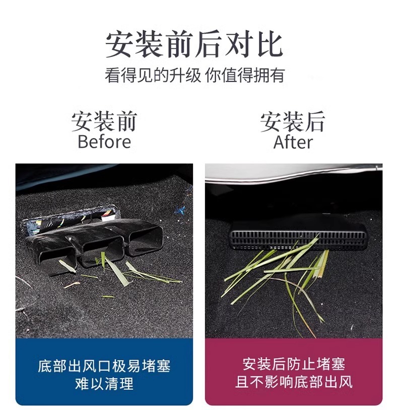 - Performance-Driven Design: Effectively prevents small debris and foreign objects from entering the air conditioning outlets, maintaining optimal airflow without obstruction, as visually depicted.