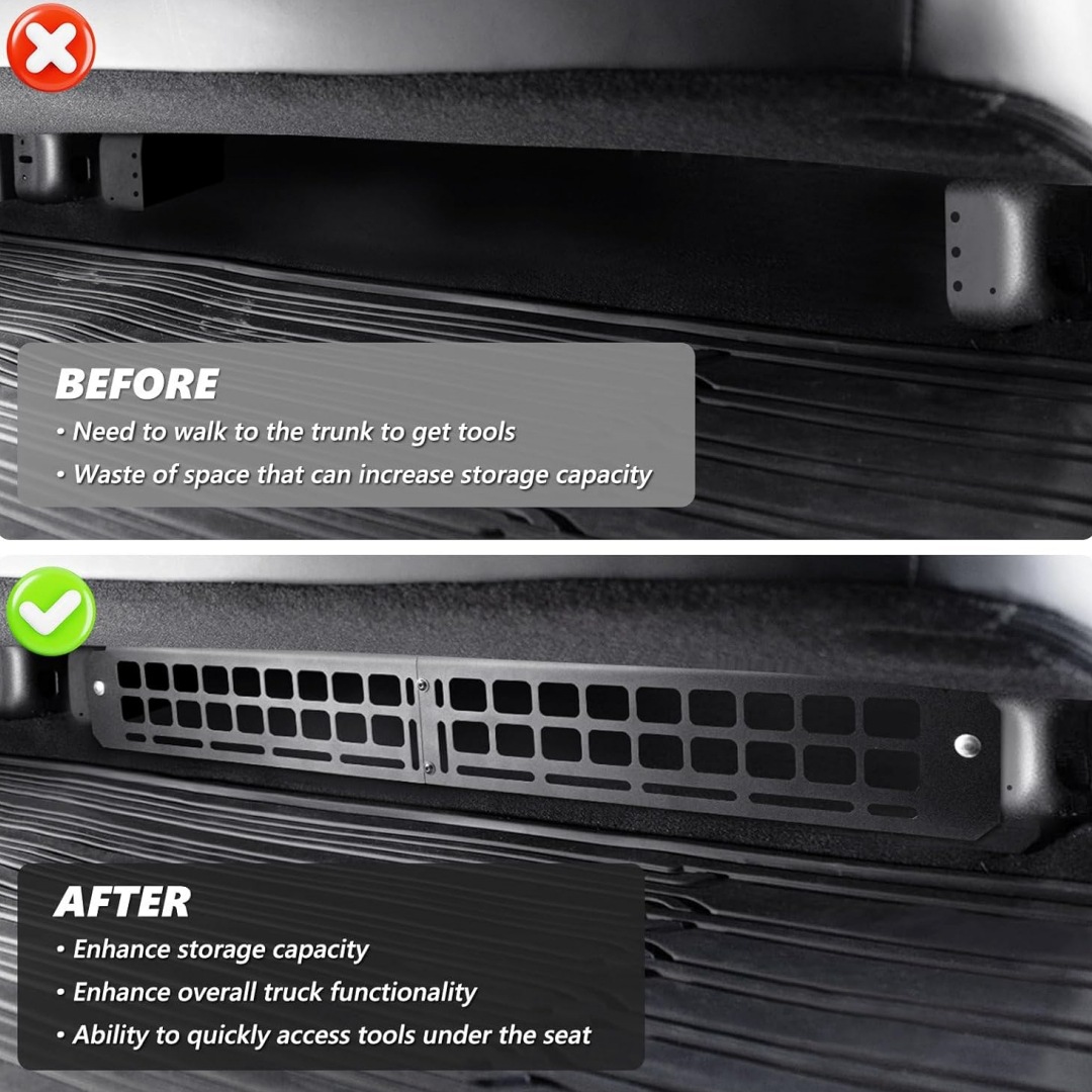 - Package Includes: Each package contains 1x under seat storage divider, offering a practical solution to maximize space and reduce clutter in your truck’s cab.