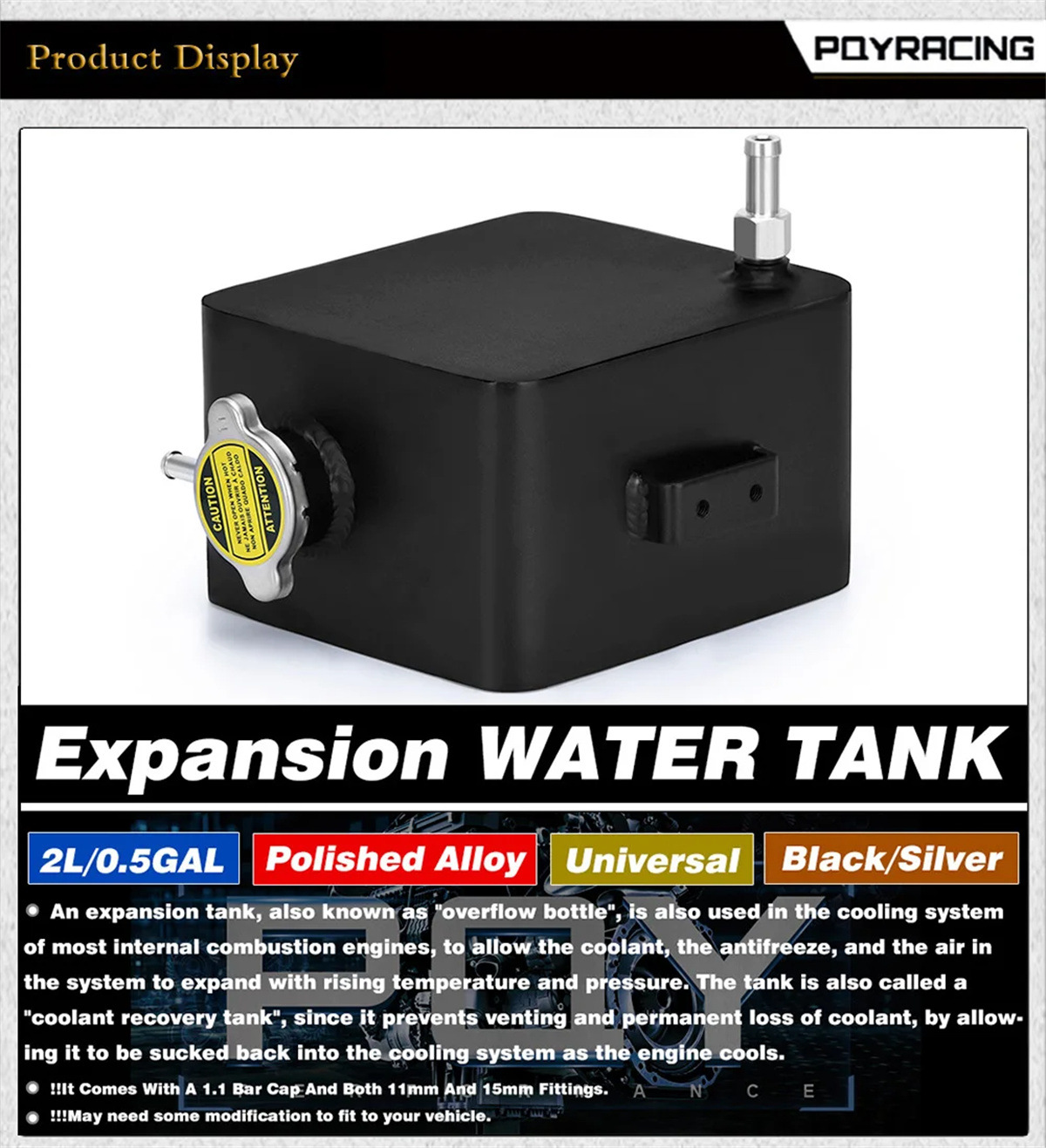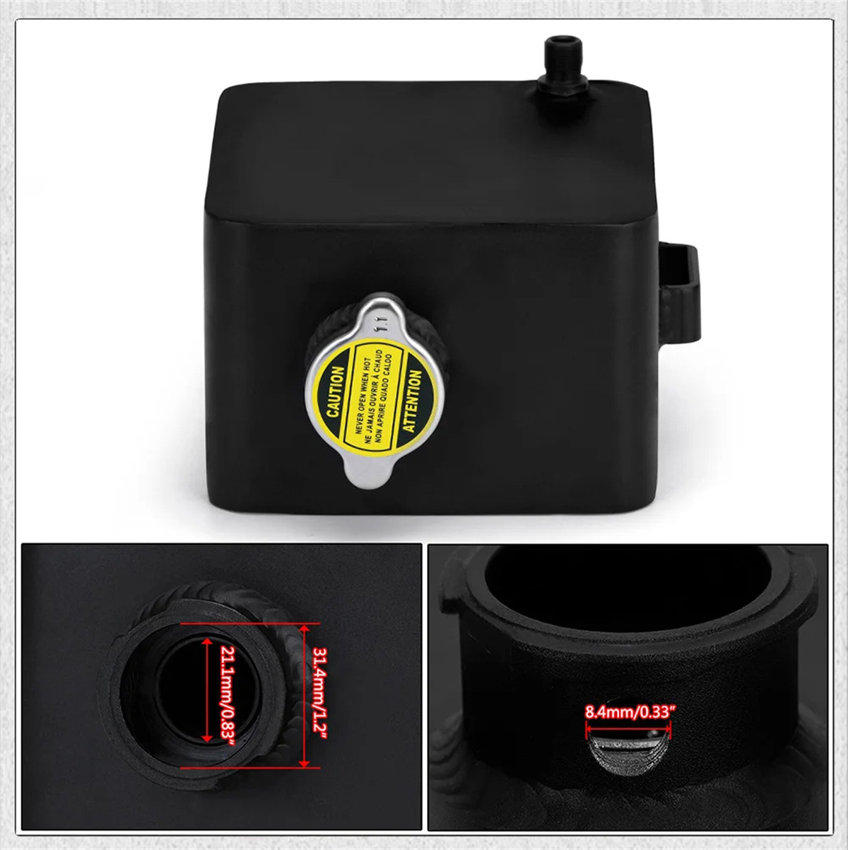 - Stylish & Functional Design: Available in black and silver, this racing coolant tank not only improves your vehicle’s cooling system but also adds a sleek, performance-oriented aesthetic to your engine bay. Includes the tank and cap.