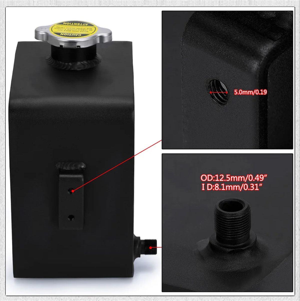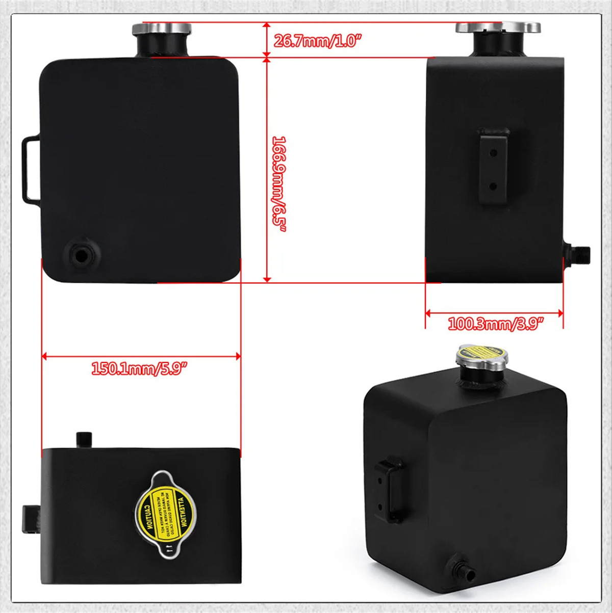 - Universal Compatibility: Designed for wide application, this 2.5L aluminum coolant overflow expansion tank is suitable for most racing and modified vehicle setups, ensuring broad utility across various models.
