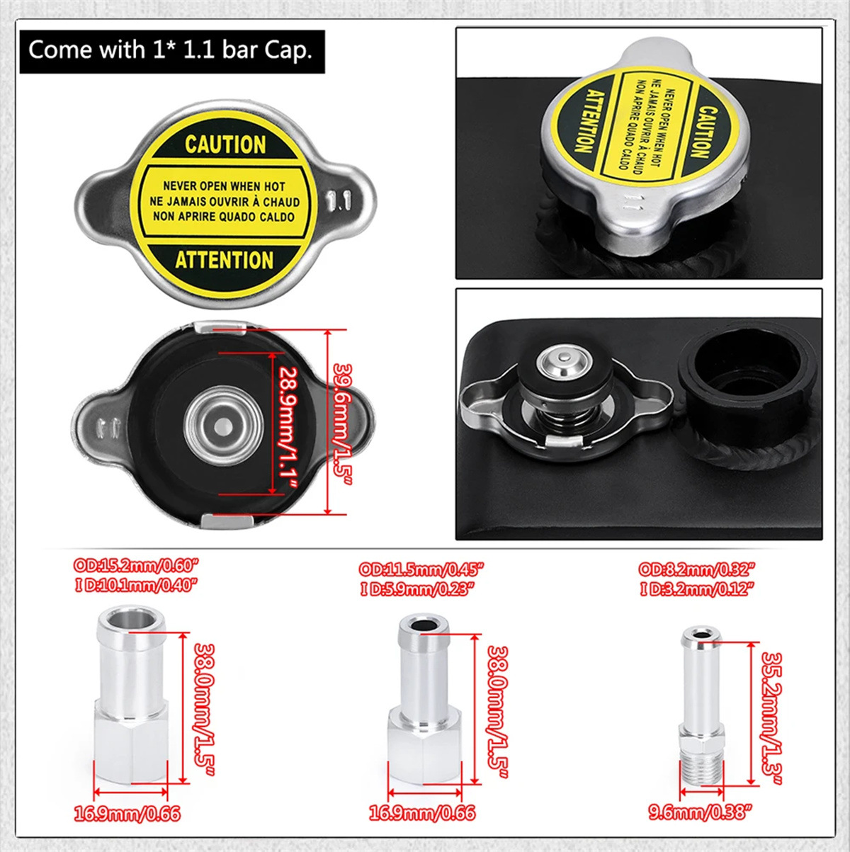 - Easy Installation & Maintenance: Featuring a user-friendly design, this universal coolant reservoir allows for straightforward installation, making it an ideal upgrade for both professional mechanics and DIY enthusiasts. Comes with necessary fittings for a hassle-free setup.