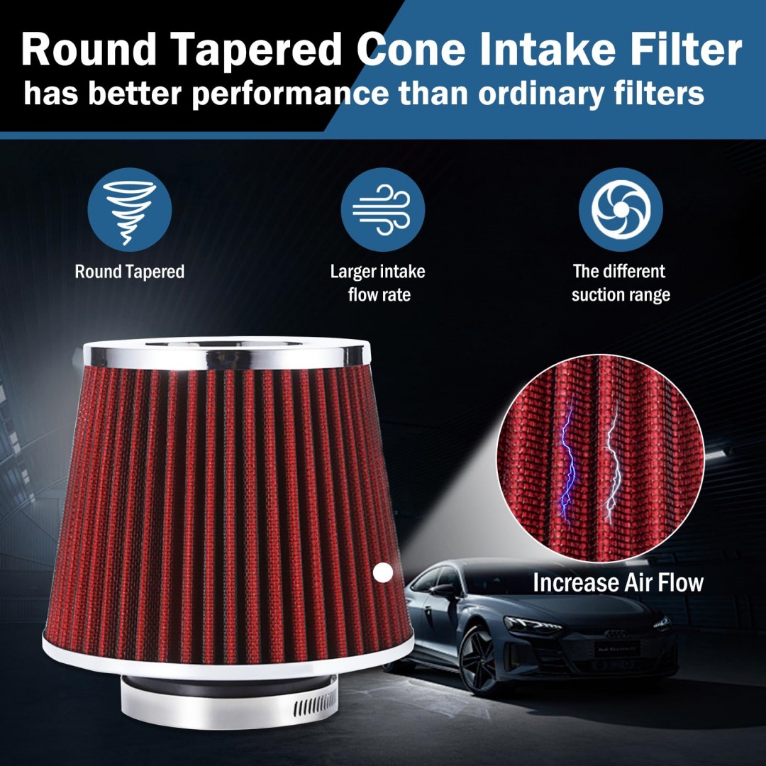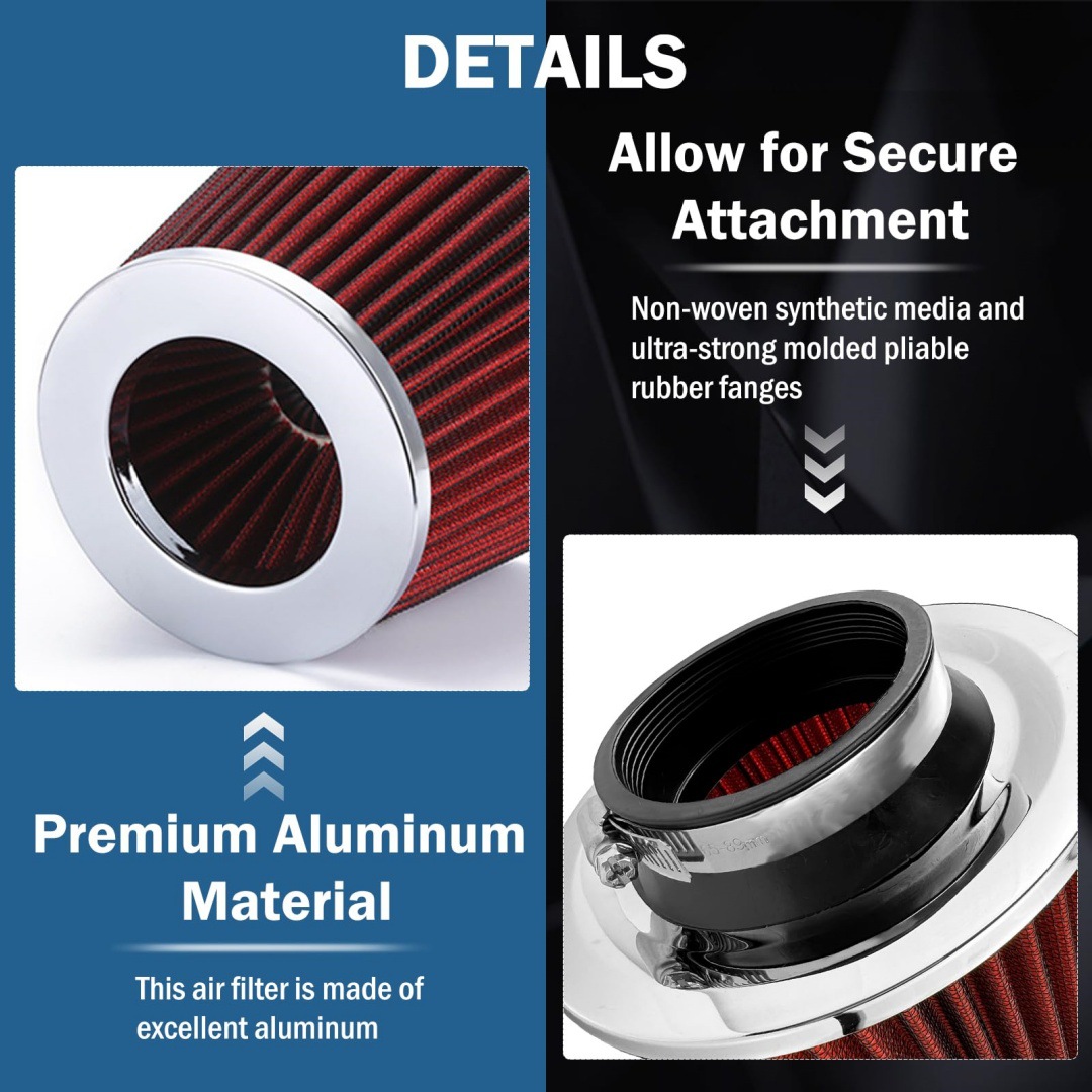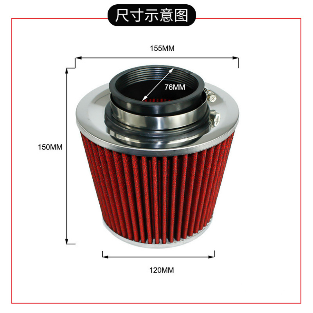 - Universal Fitment: Designed for wide application, this air intake filter is suitable for vehicles with 63MM, 76MM, or 101MM inlet pipe diameters, providing versatile compatibility for various car modification needs.