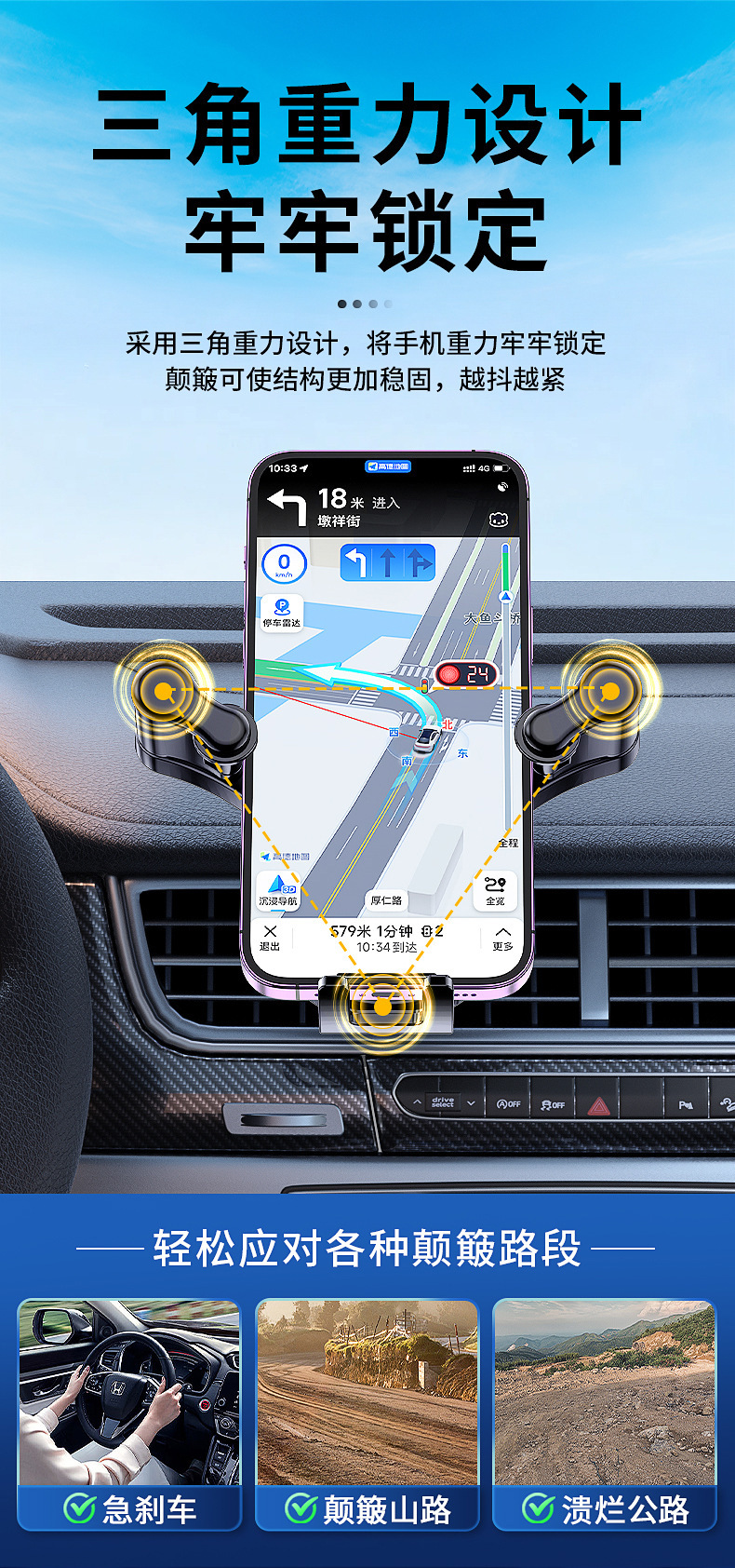 Multi-functional Gravity Phone Mount for Car Air Vent Universal
