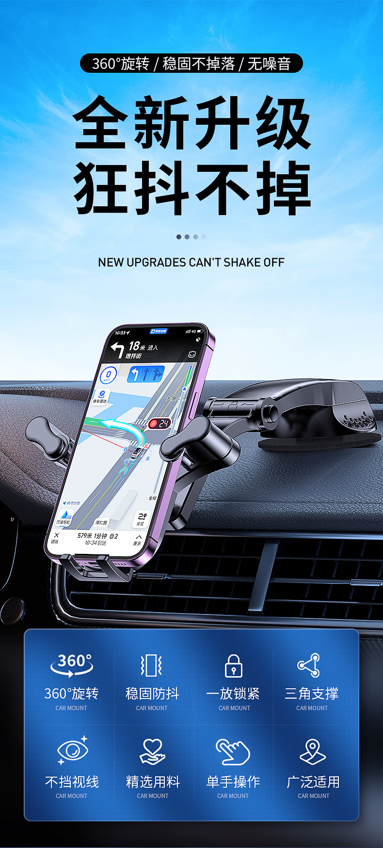 - Universal Compatibility: Designed as a versatile car phone holder, this mount is compatible with all mobile phone sizes, providing a secure and stable grip for your device in any vehicle.