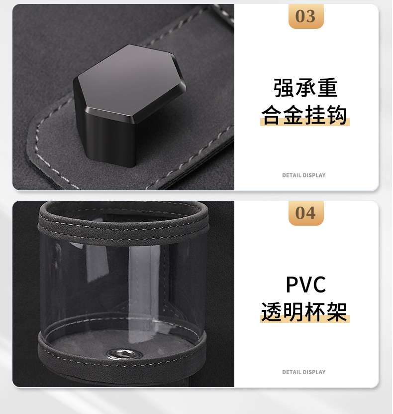 - Heavy-Duty Build: Crafted from durable suede-like material and clear plastic cup, with metal hexagonal hooks, ensuring longevity and a sleek look.