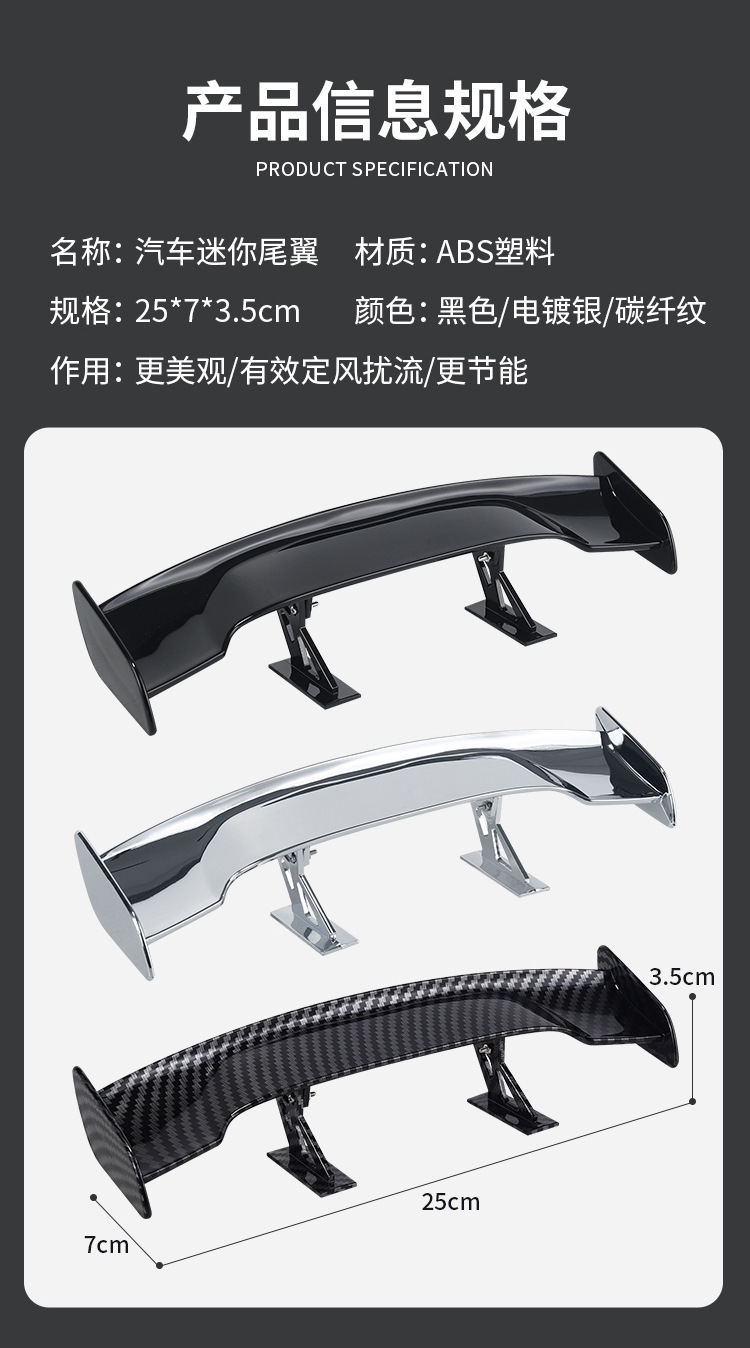 - Compact & Legal Design: With a compact size of 250*70*35mm, this mini tail wing offers a subtle yet effective aerodynamic improvement, providing a legal and personalized modification that adds a touch of aggression to your vehicle.