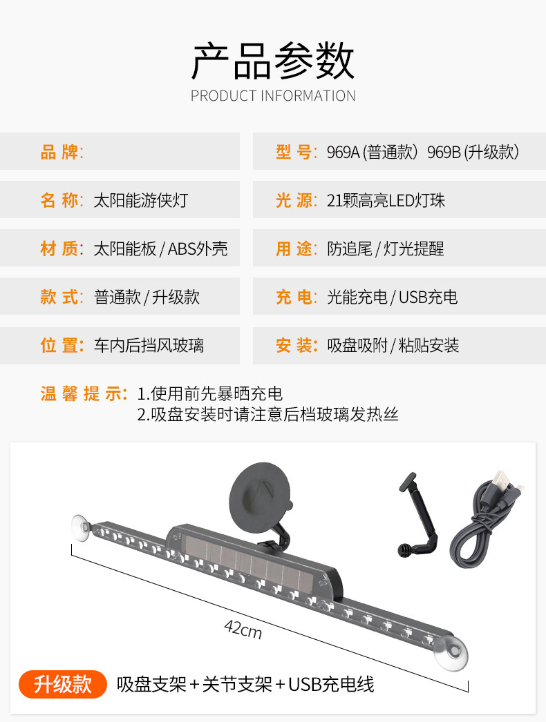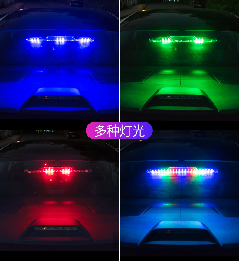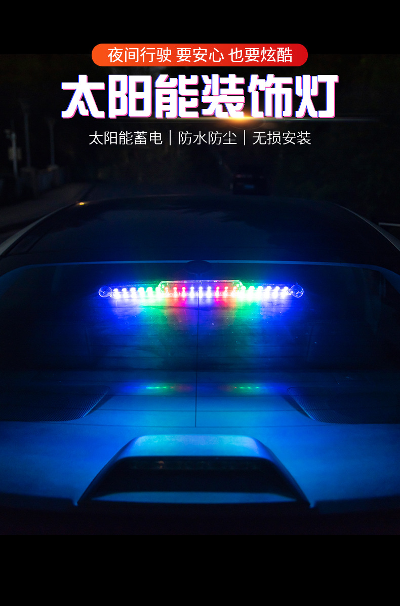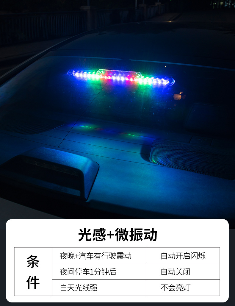 Universal RGB LED Anti-Rear-End Warning Light with Solar Charging for Rear Windshield – 21 LED Short Strip