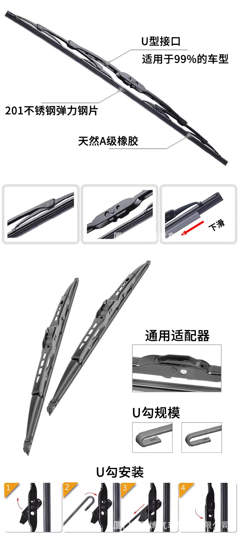 Universal U-Type Iron Frame Windshield Wiper Blades for Most Car Models