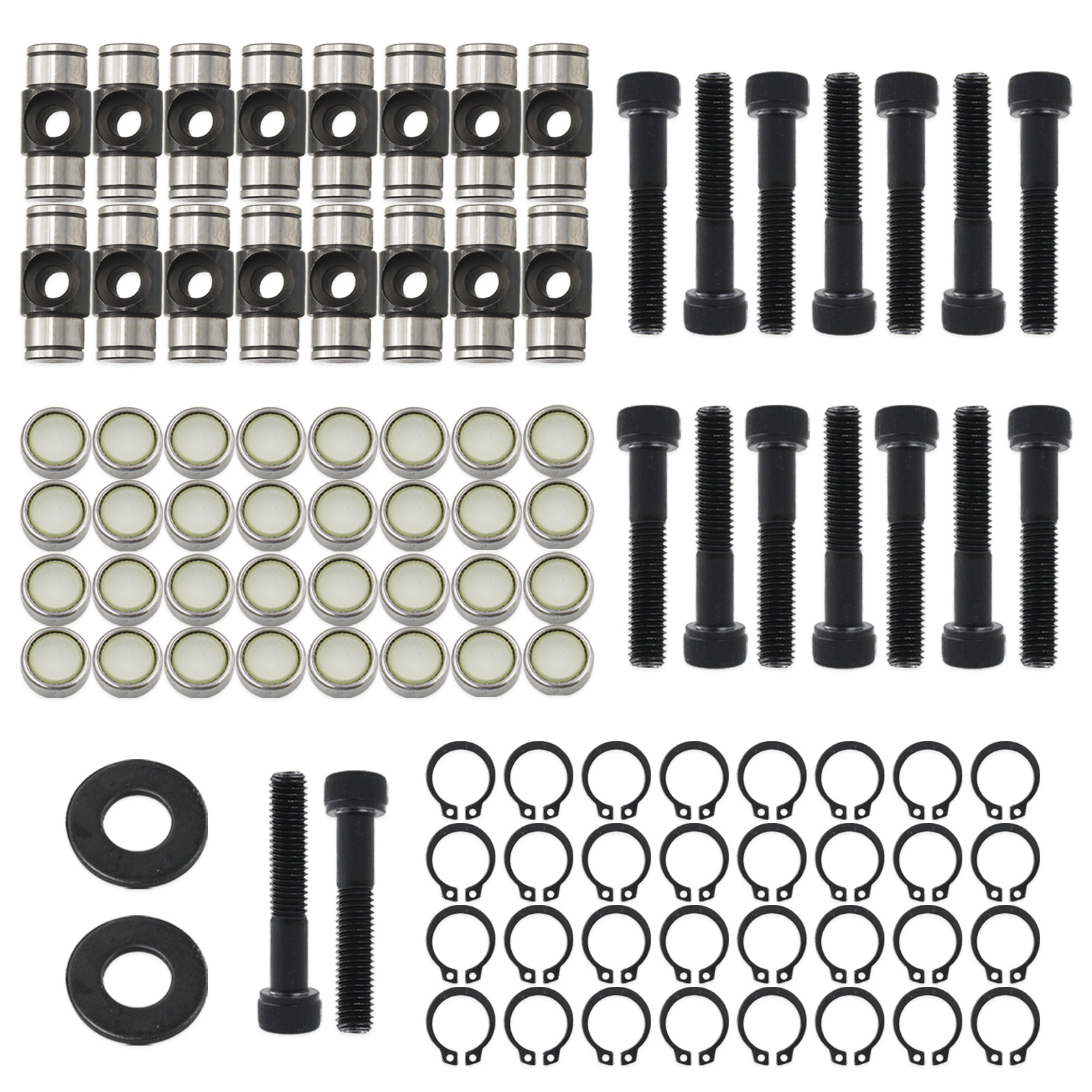 • Includes 16 rocker trunnions, 32 captured style trunnion bearings, 32 snap rings, and 16 allen head rocker bolts (non-LS7): Everything needed for a complete upgrade, ensuring your LS engine’s valvetrain operates with optimal stability and longevity.