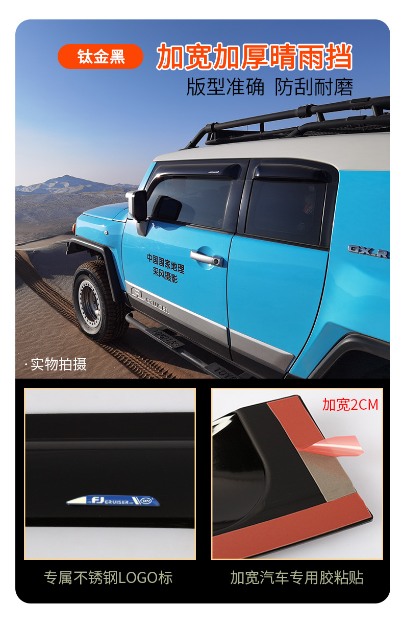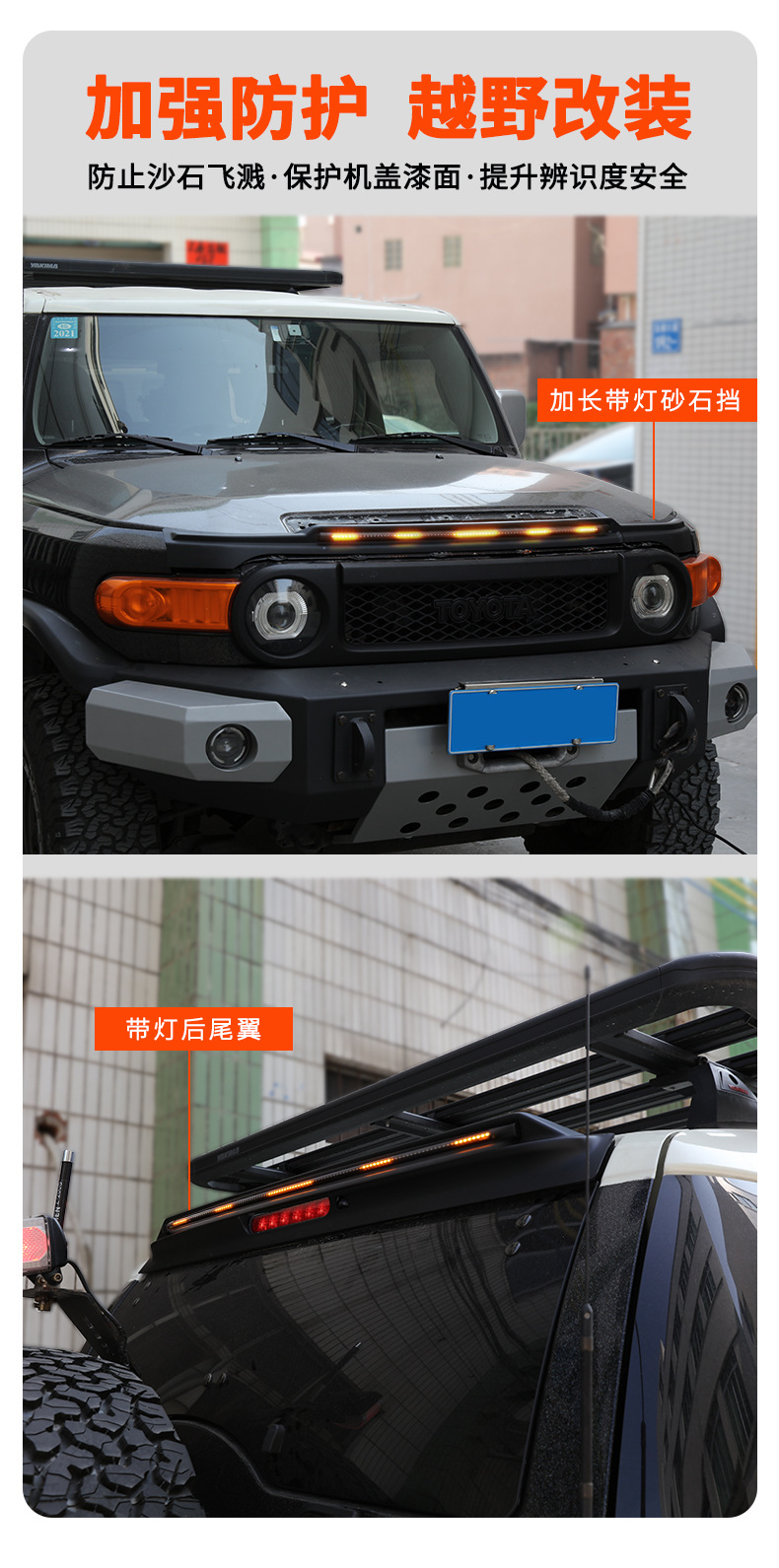 Upgraded Wider Rain Guard Wind Deflector Stone Guard with LED Lights for Toyota FJ Cruiser 2007-Present