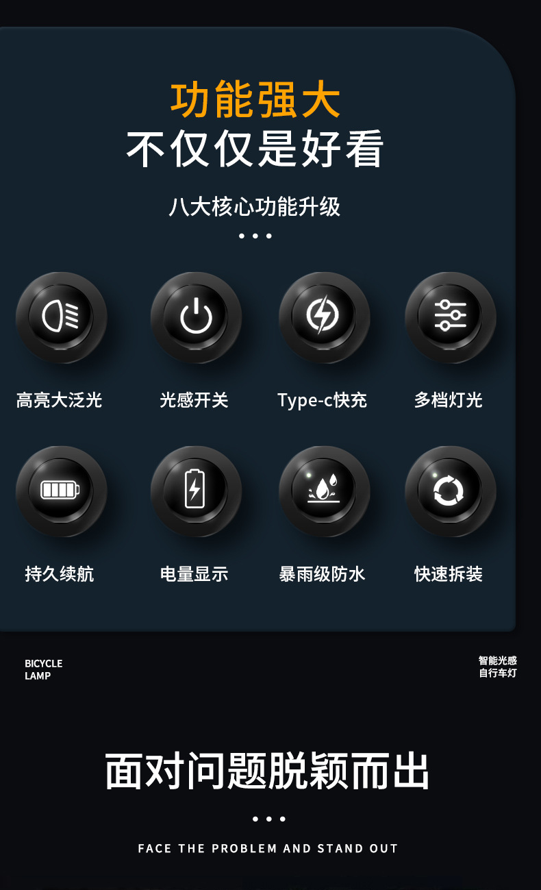 - Complete Package: Includes 1x V70 Smart Photoelectric Sensing Bicycle Headlight with integrated large capacity lithium battery, exactly as pictured. Designed for immediate use to improve cycling safety and visibility.