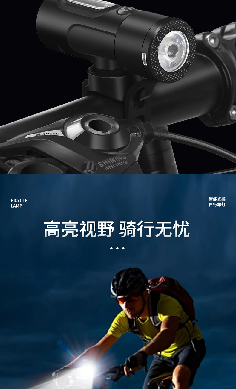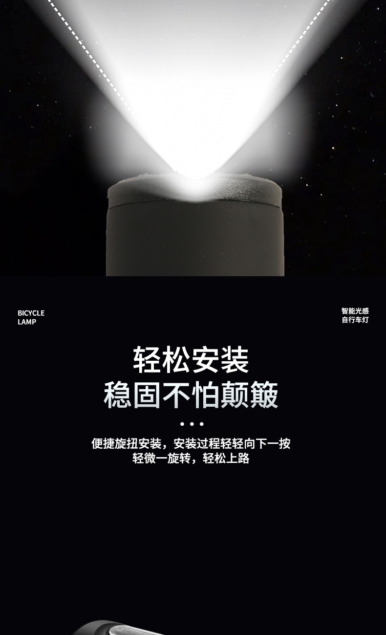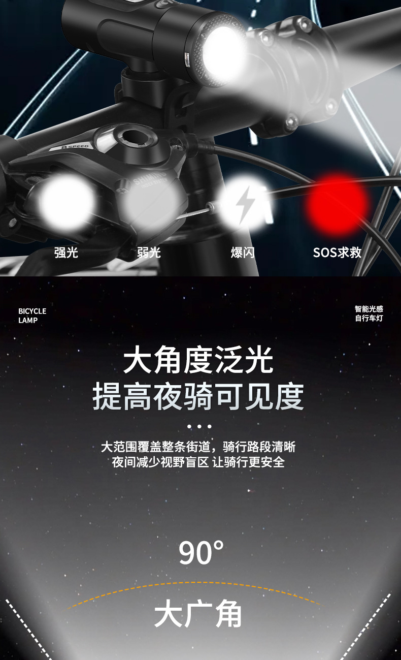 V70 Smart Photoelectric Sensing Bicycle Headlight for Mountain Road Bikes – High Brightness LED, Rotating Mount, Large Capacity Lithium Battery for Cycling Safety and Illumination