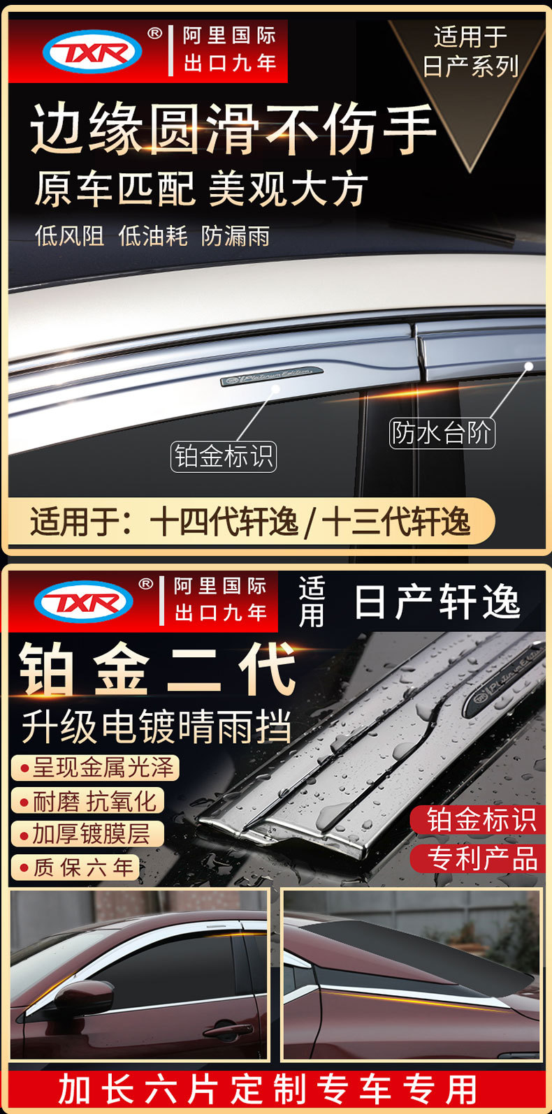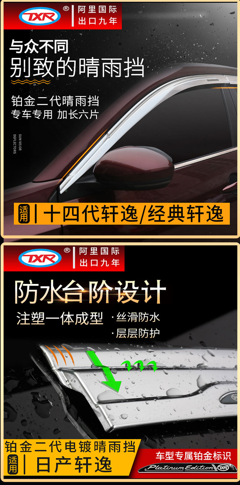 Window Visor Platinum Rain Guard Deflector for Nissan Sylphy 14th Gen New Sylphy Classic Sylphy