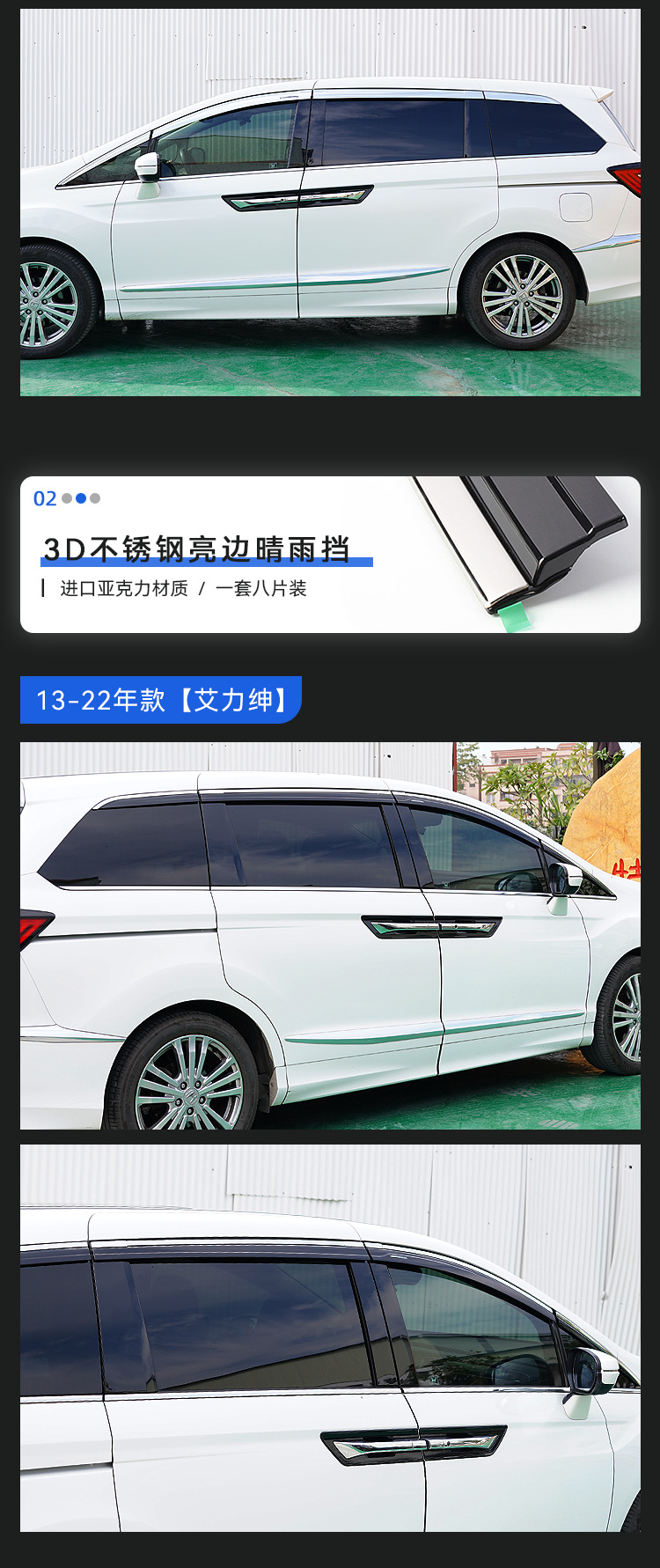 Window Visor Rain Guard with Stainless Steel Trim for Honda Odyssey Elysion
