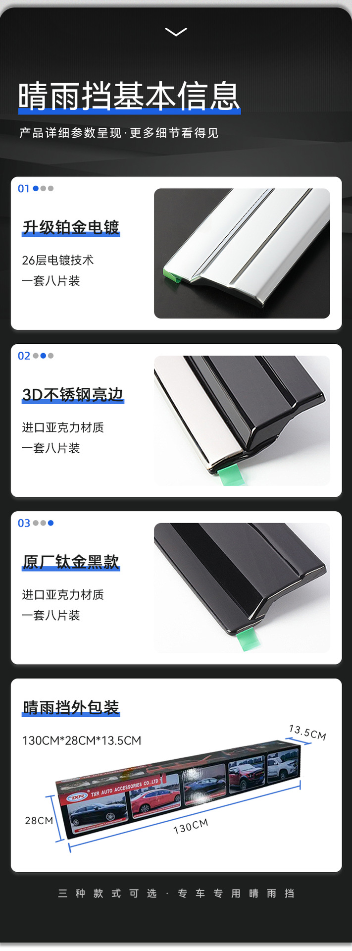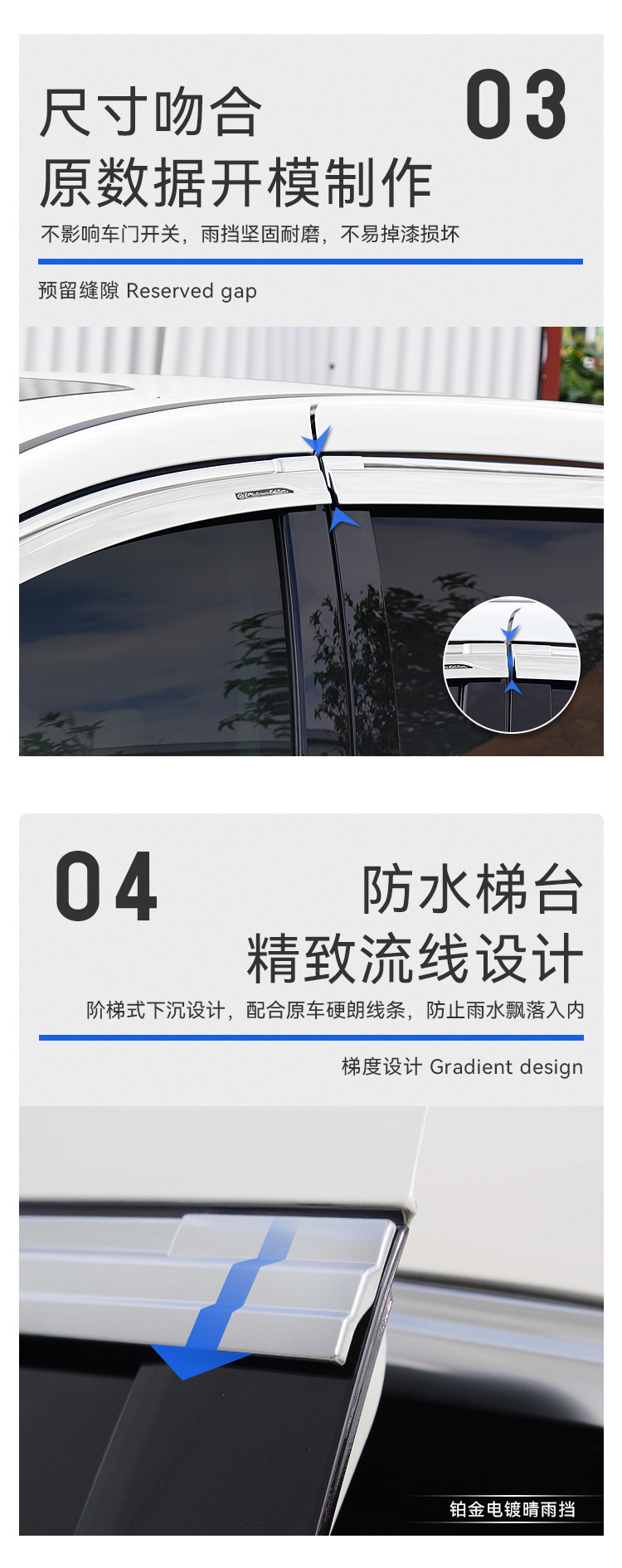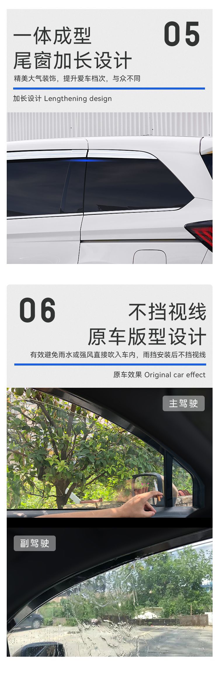 - Performance-Driven Design: Offers effective rain diversion, reduces wind noise, and allows for window ventilation even in wet conditions, enhancing driving comfort.