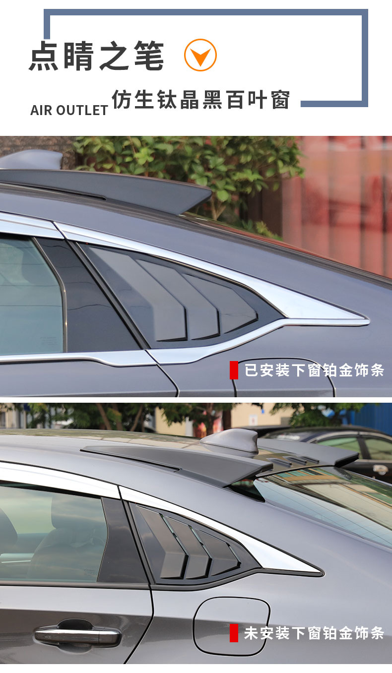 - Performance-Driven Design: Designed to allow fresh air circulation while keeping rain out, reducing wind noise, and preventing window fogging, as shown in the installed state.