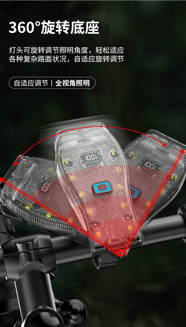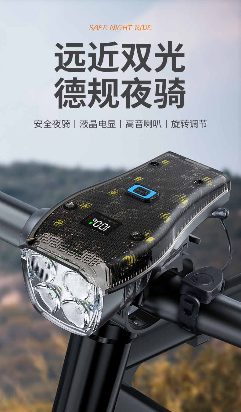 Wireless Digital Display 4-LED Bicycle Headlight with Horn and Type-C Charging for Cycling Accessories