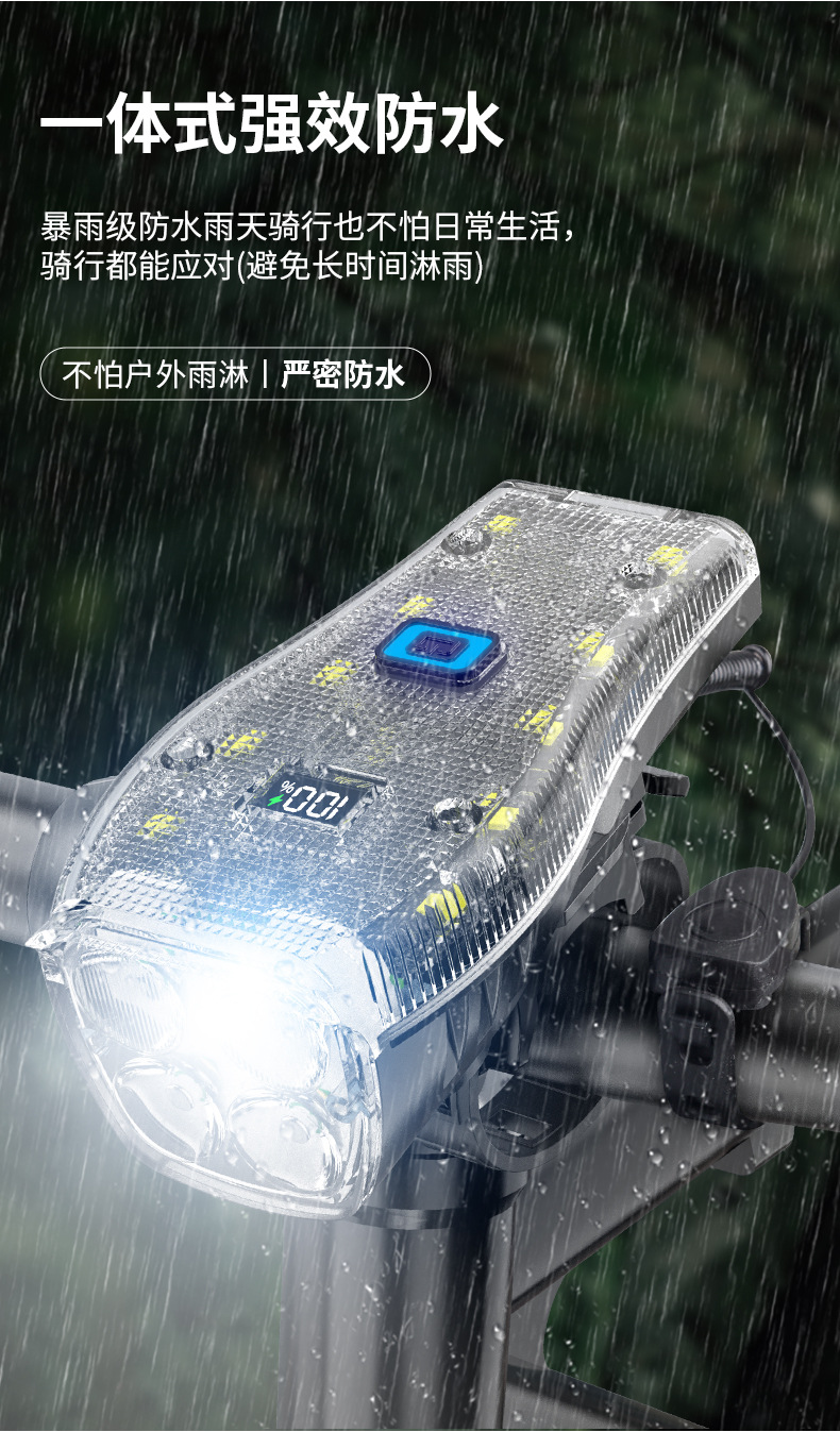 - Core Function & Performance Enhancement: Equipped with 4-LED high and low beam light source, providing powerful illumination. Includes an integrated loud warning horn and a digital display for battery percentage, boosting visibility and safety.