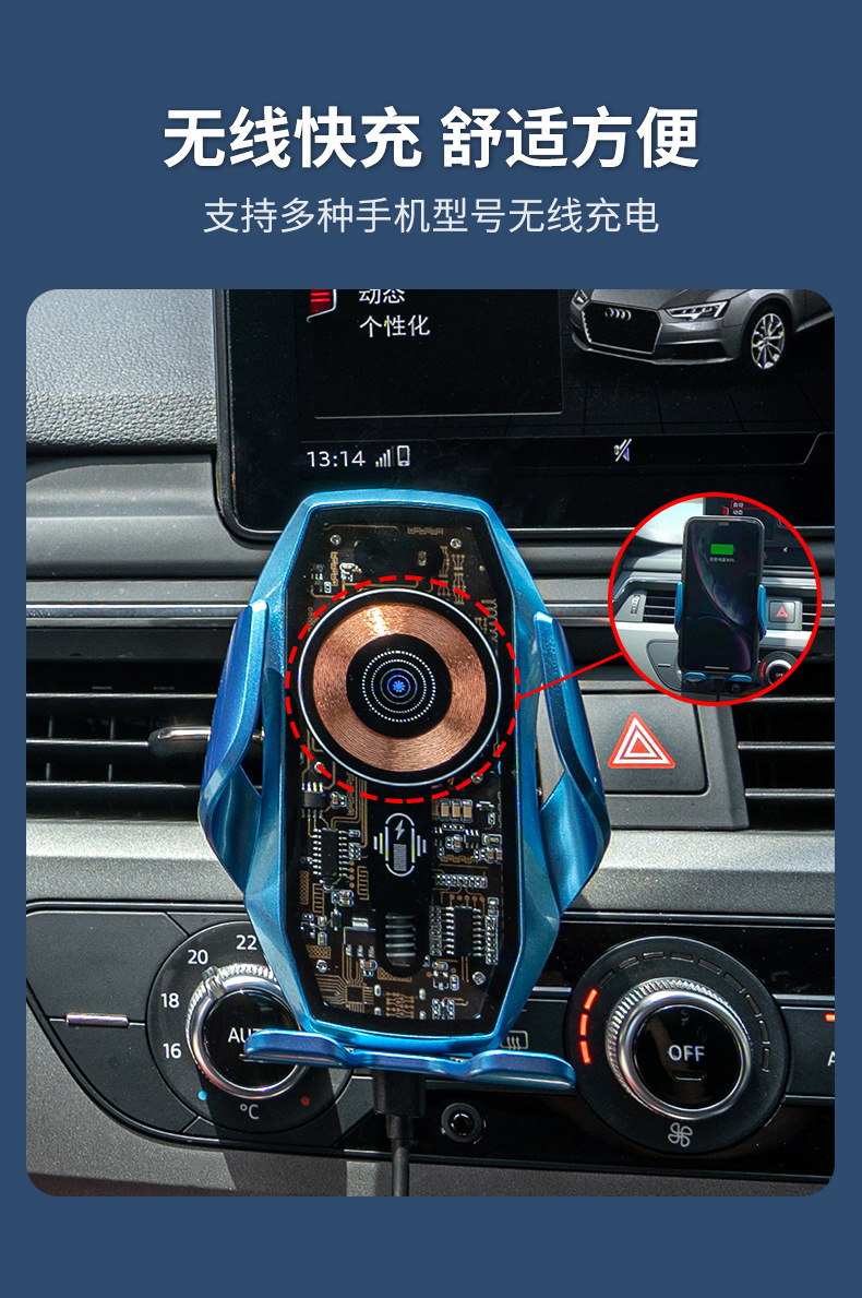 Wireless Fast Charging Phone Mount Electric Induction Car Phone Holder for Universal Vehicles