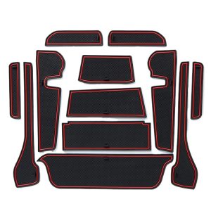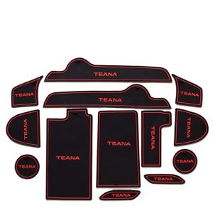 Automotive Interior Storage Slot Anti-Slip Mats Cup Holder Pad Set for Nissan Teana 2013-2016 (Red Trim)