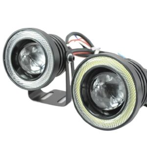 Automotive LED Projector Fog Lights with COB Angel Eye Halos Driving Lamp 2.5 Inch White Light for Universal Car